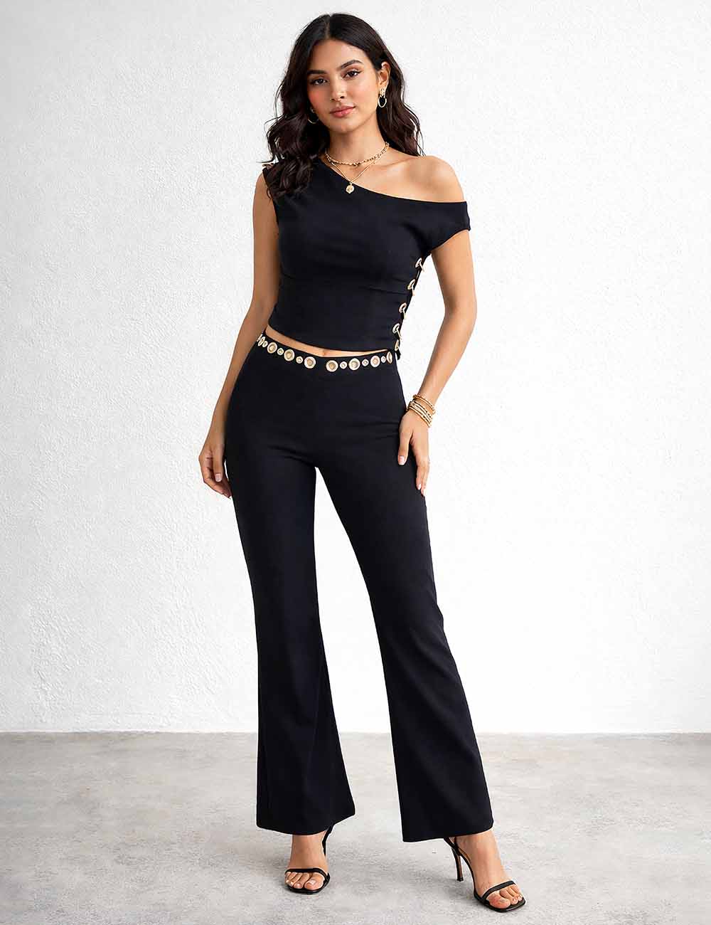 Ladies Solid Color Sleeveless Vest and Pants Sets