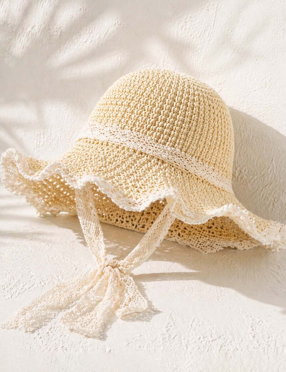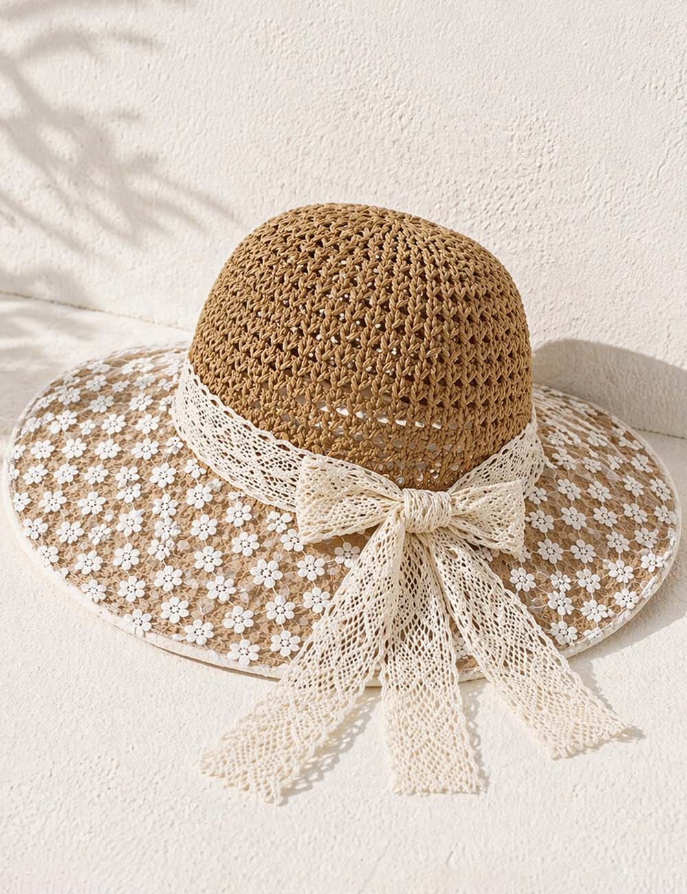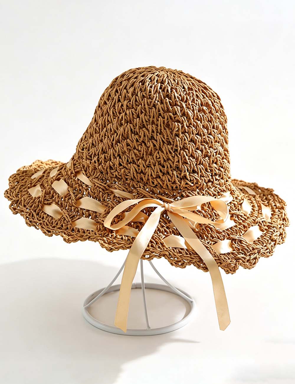 Ladies Boho Wide Brim Ribbon Bow Beach Paper Straw Hat