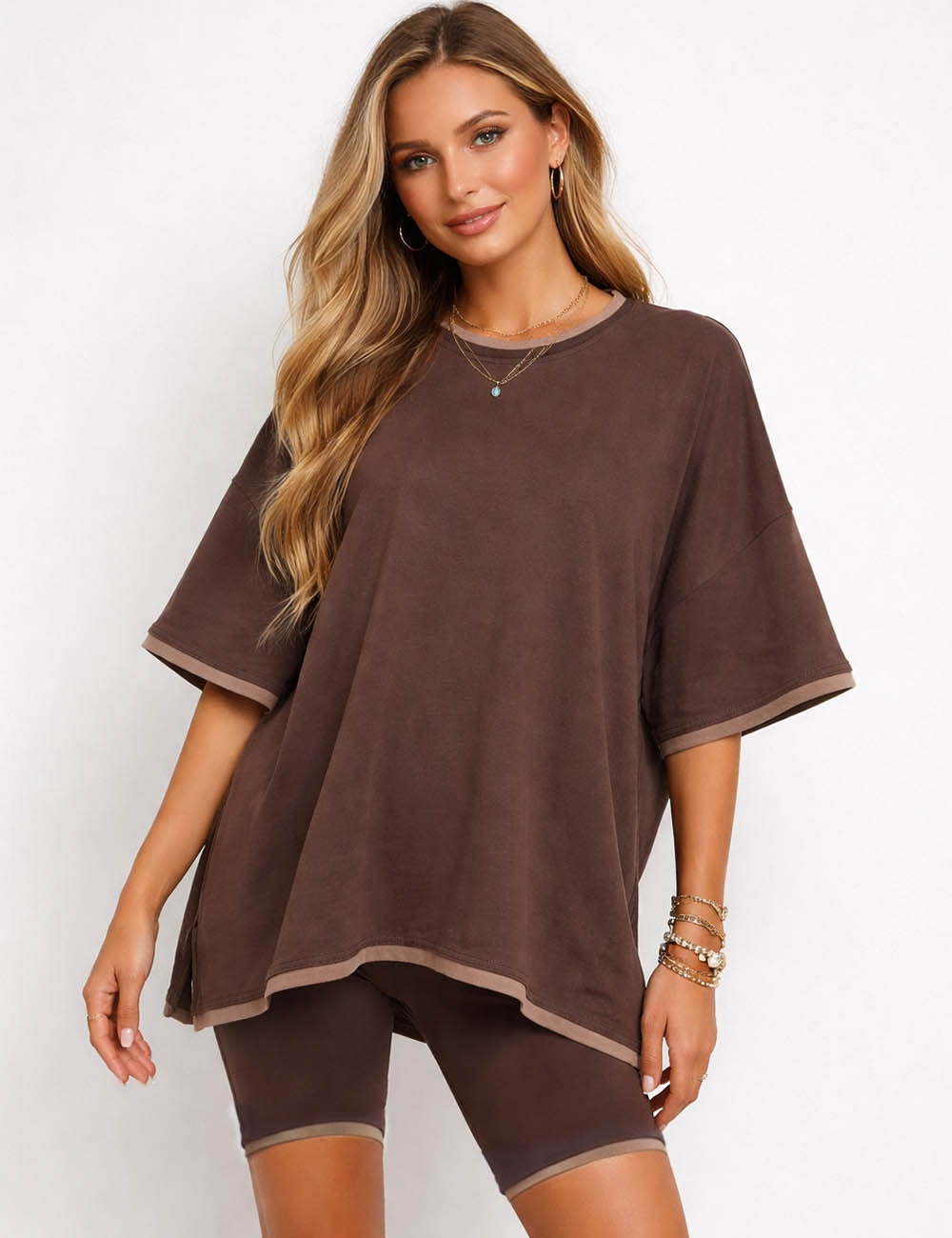 Ladies Loose Top and Shorts 2PCS Casual Tee Set SKST23129