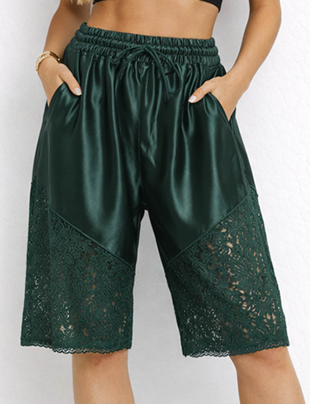 Ladies Lace Panel Elastic Waist Lantern Pants