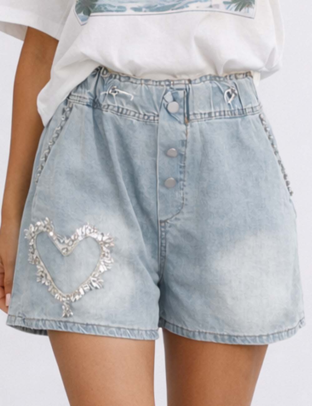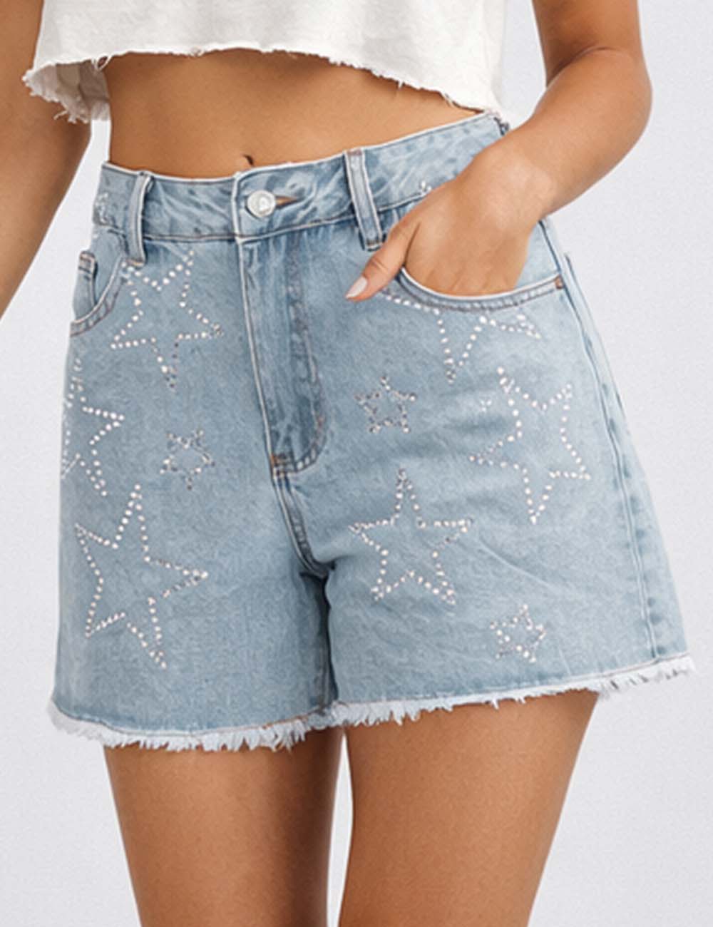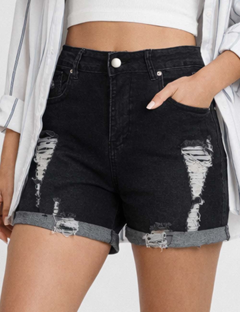 Ladies Distressed Raw Edge Frayed Hem Denim Shorts