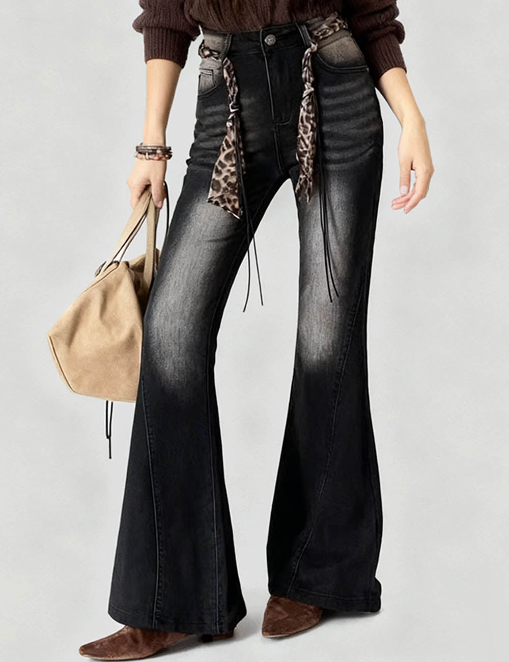 Ladies Vintage Jeans Fleece Lining Flared Leg Denim Pants