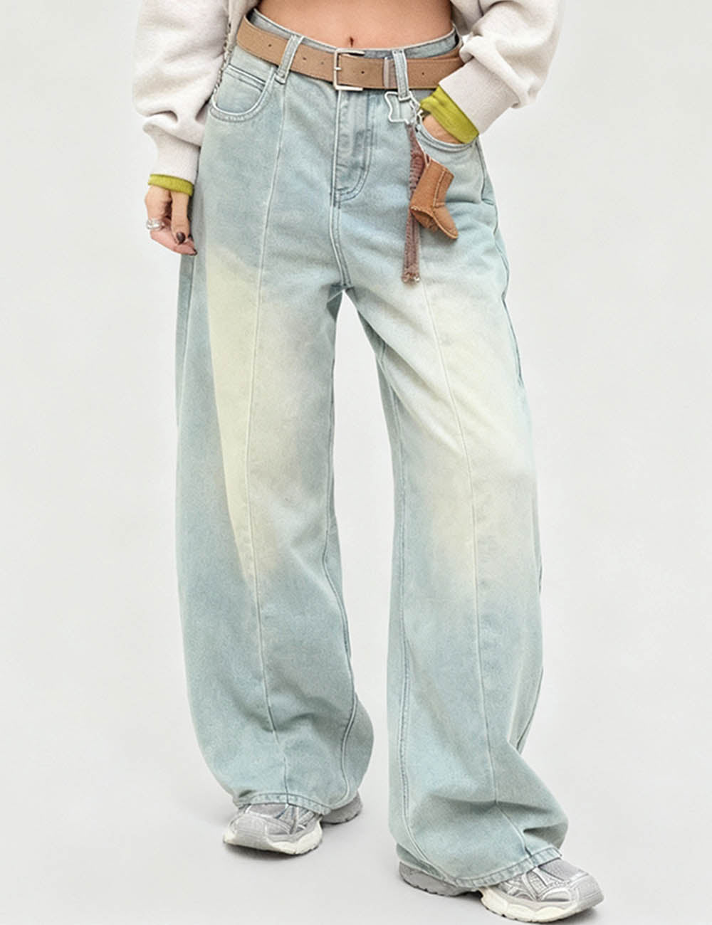 Ladies Vintage Patchwork Drawstring Wide Leg Denim Pants