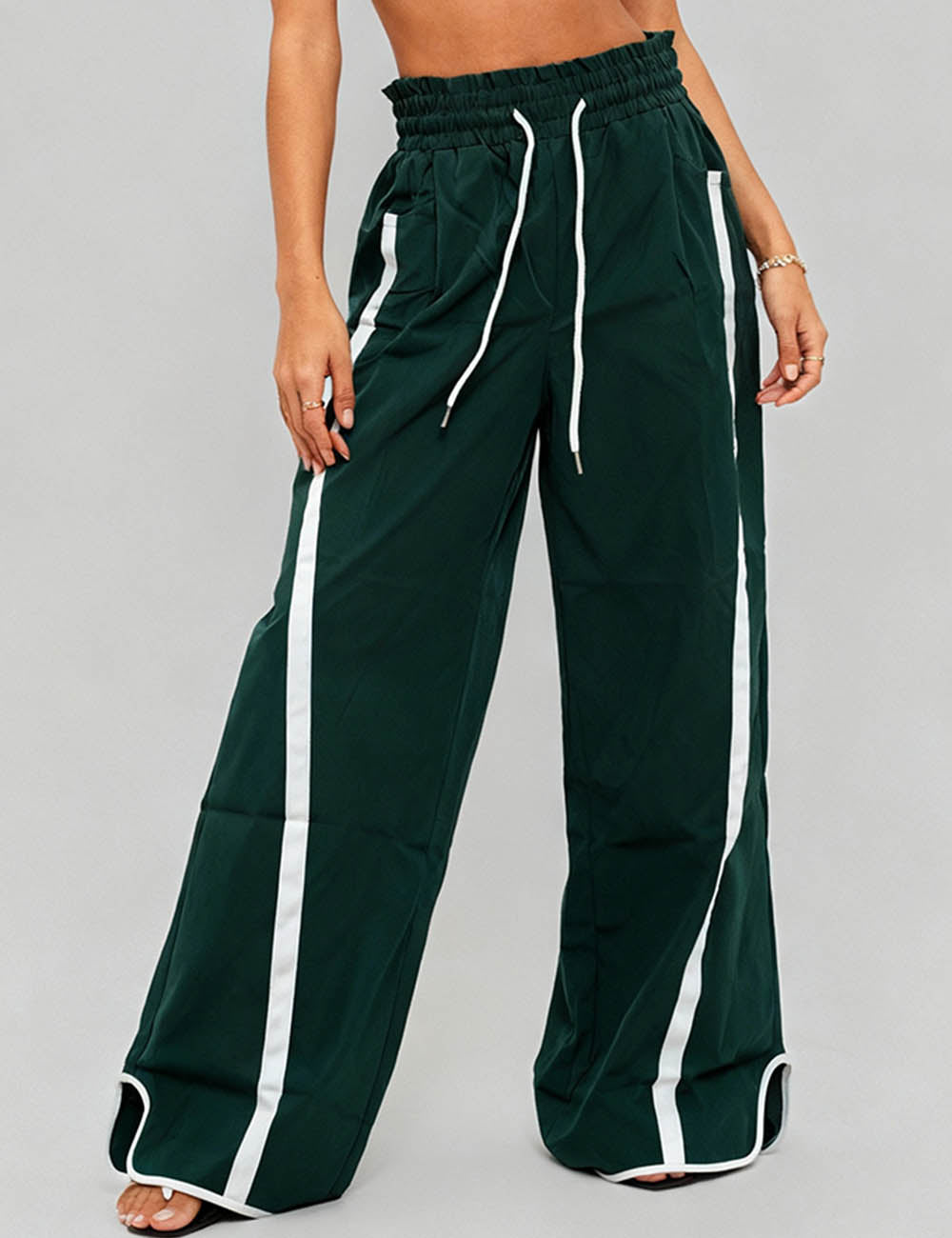 Ladies Color Block Striped Elastic Tie Waist Wide Leg Pants