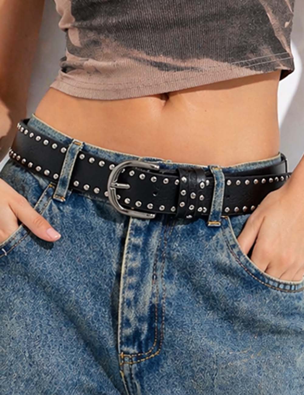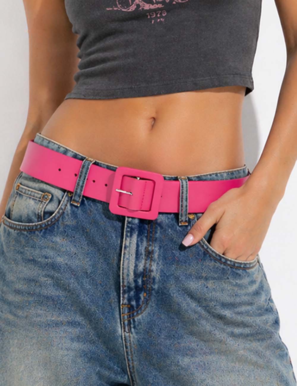 Ladies Chic Square Buckle Solid Color Faux Leather Waist Belt