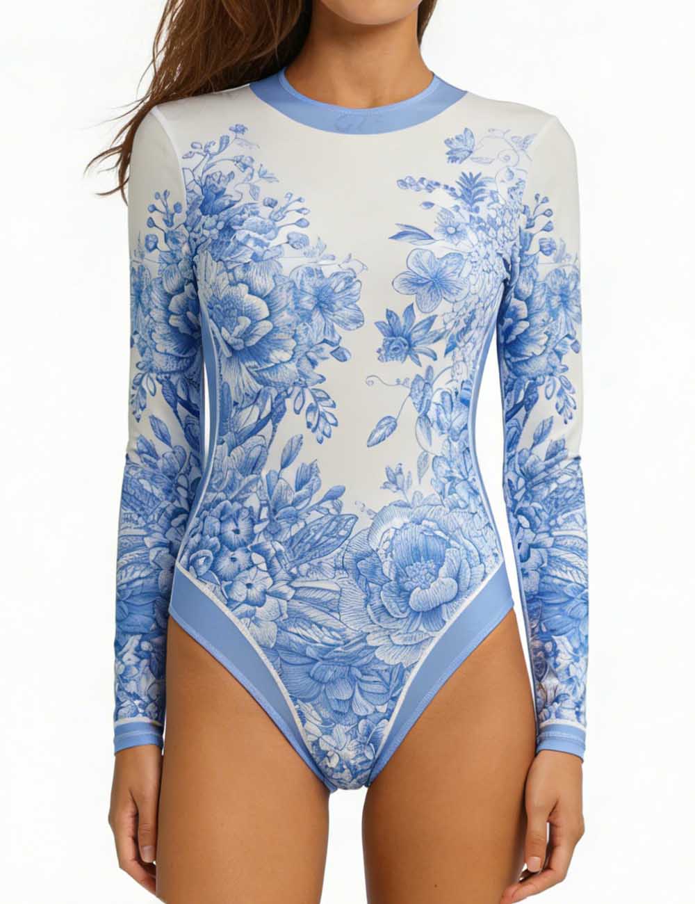 Ladies Floral Print Long Sleeves One Piece & Sarong Swimwear Set