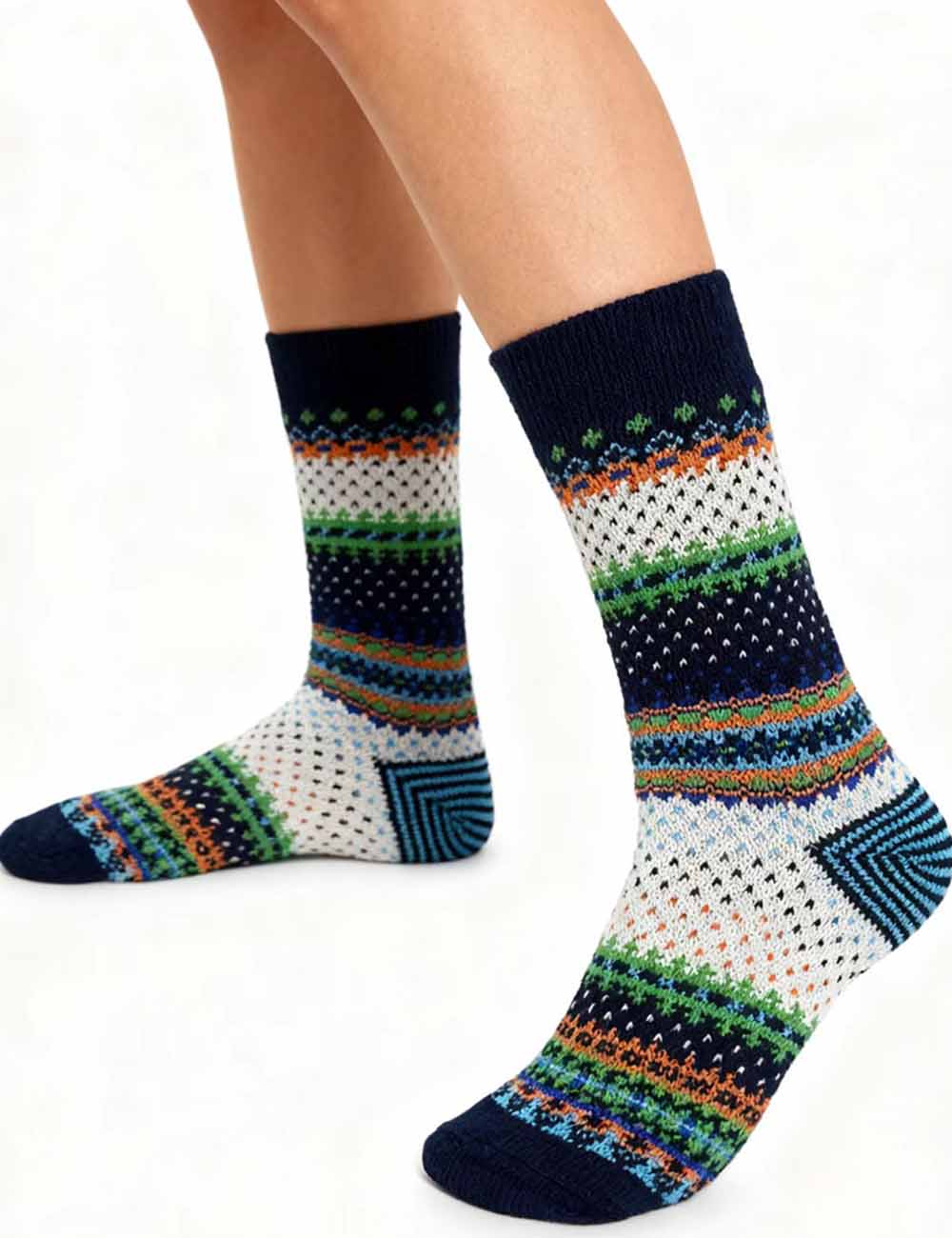 Ladies Colorful Vintage Winter Fair Isle Knit Midi Calf Socks