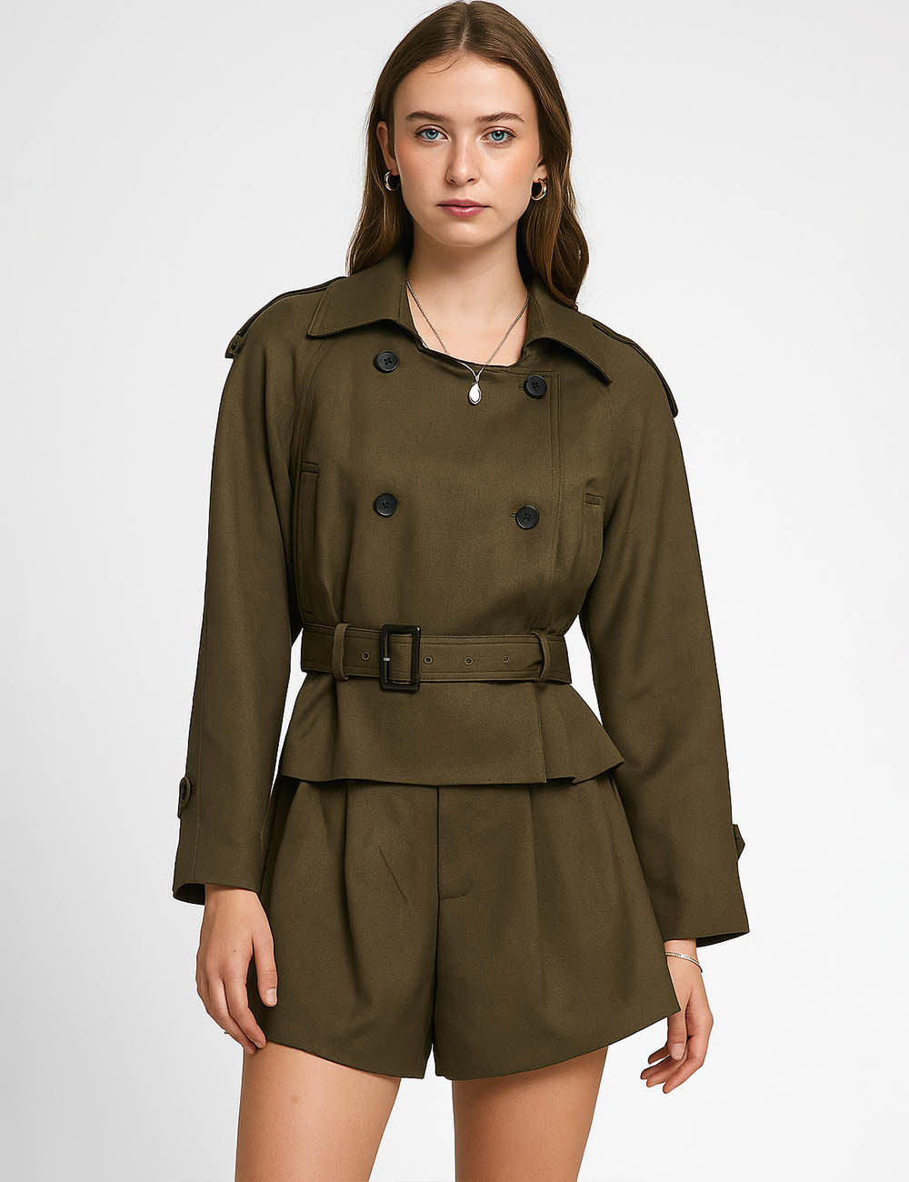 Ladies Casual Suit Set Double Breasted Blazer & Shorts 2PCS Set