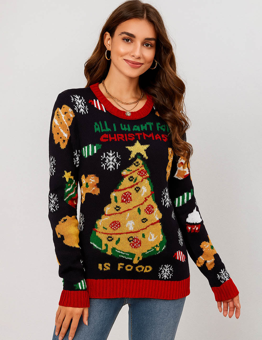 Ladies Celebrate Christmas Pullover Chirstmas Tree Sweater SKT4926