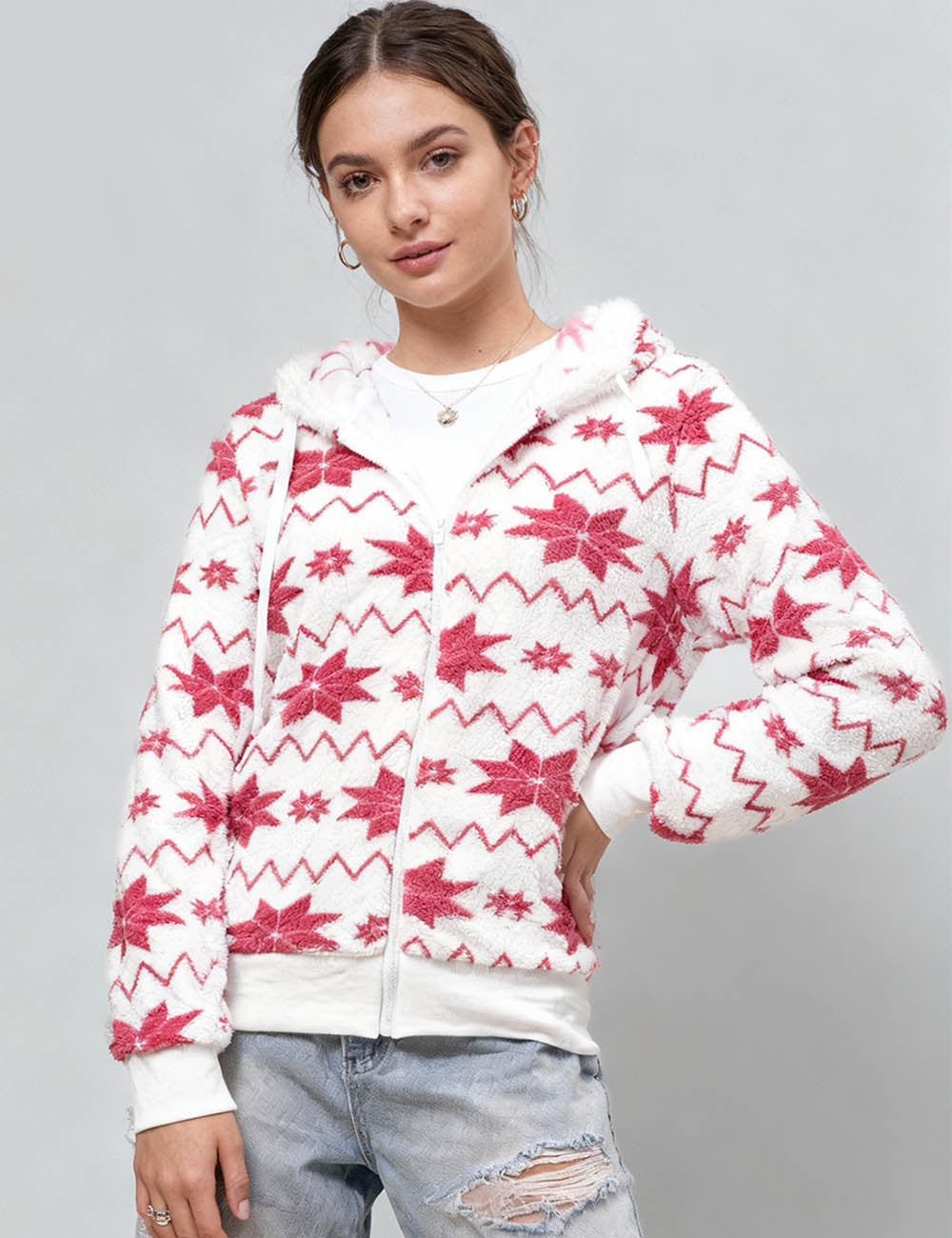 Ladies Christmas Snow Coral Fleece Zip Hooded Jacket SKT41016