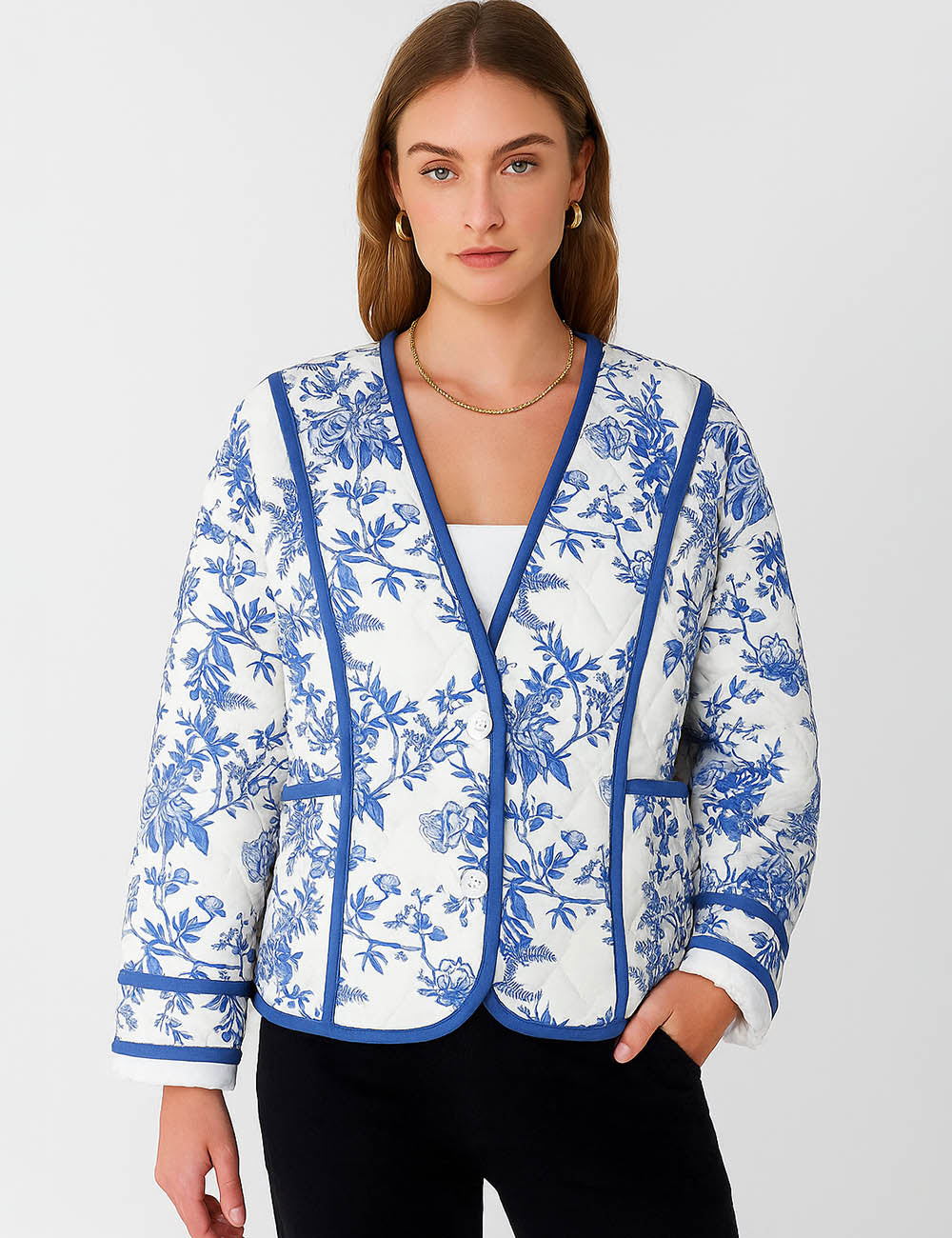 Ladies Floral Printed Cotton-Padded Jacket SKT4662