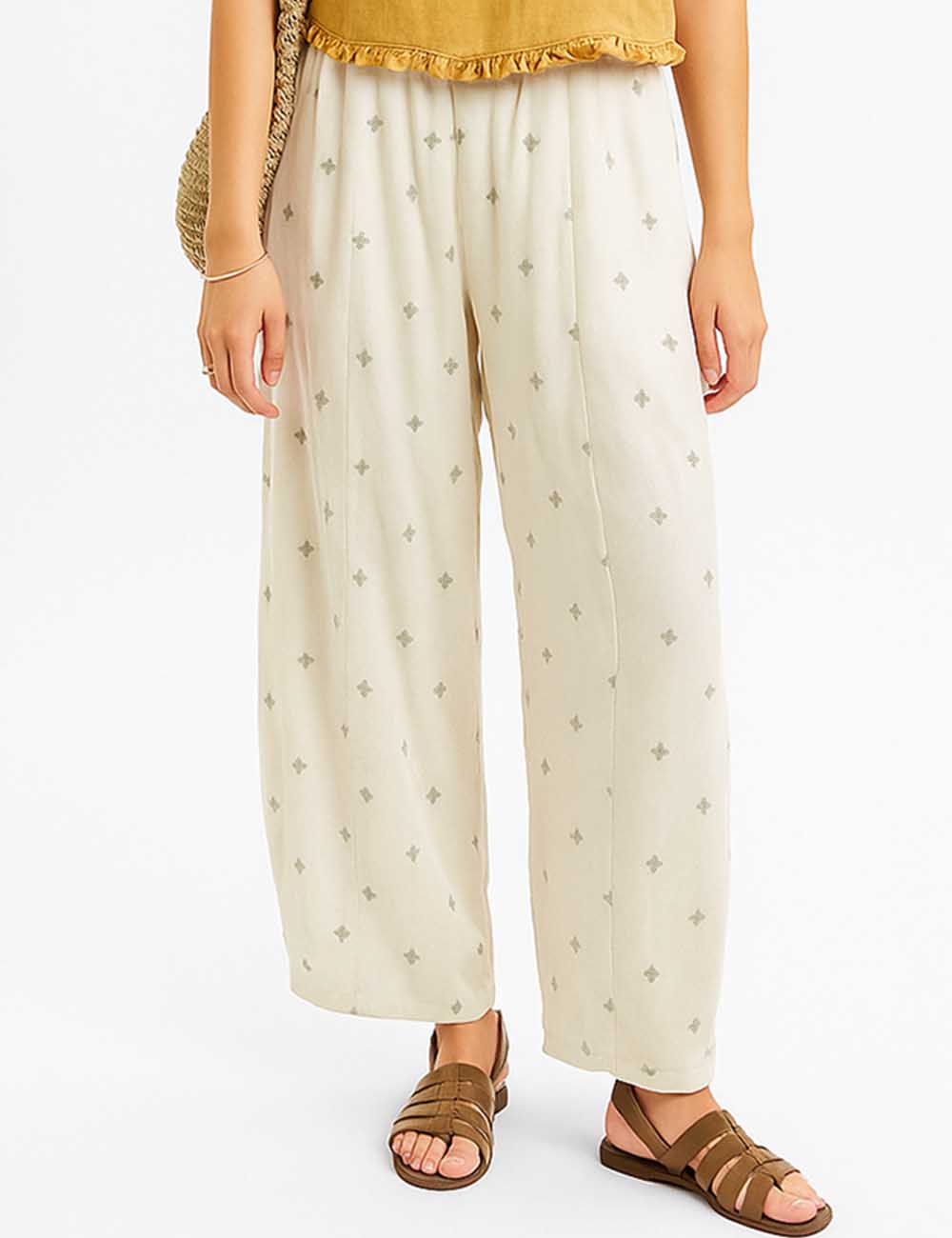 Ladies Geometric Pattern Embroidery Elastic Waist Wide Leg Pants