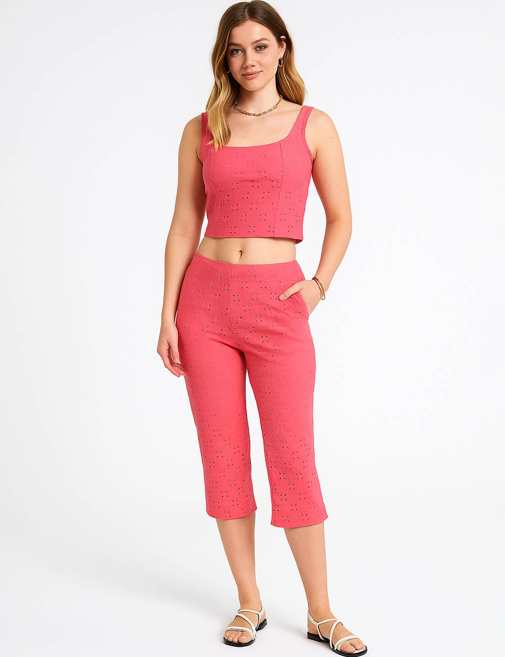 Ladies Hollow Out Knit Short Sleeves Shirt & Shorts Set
