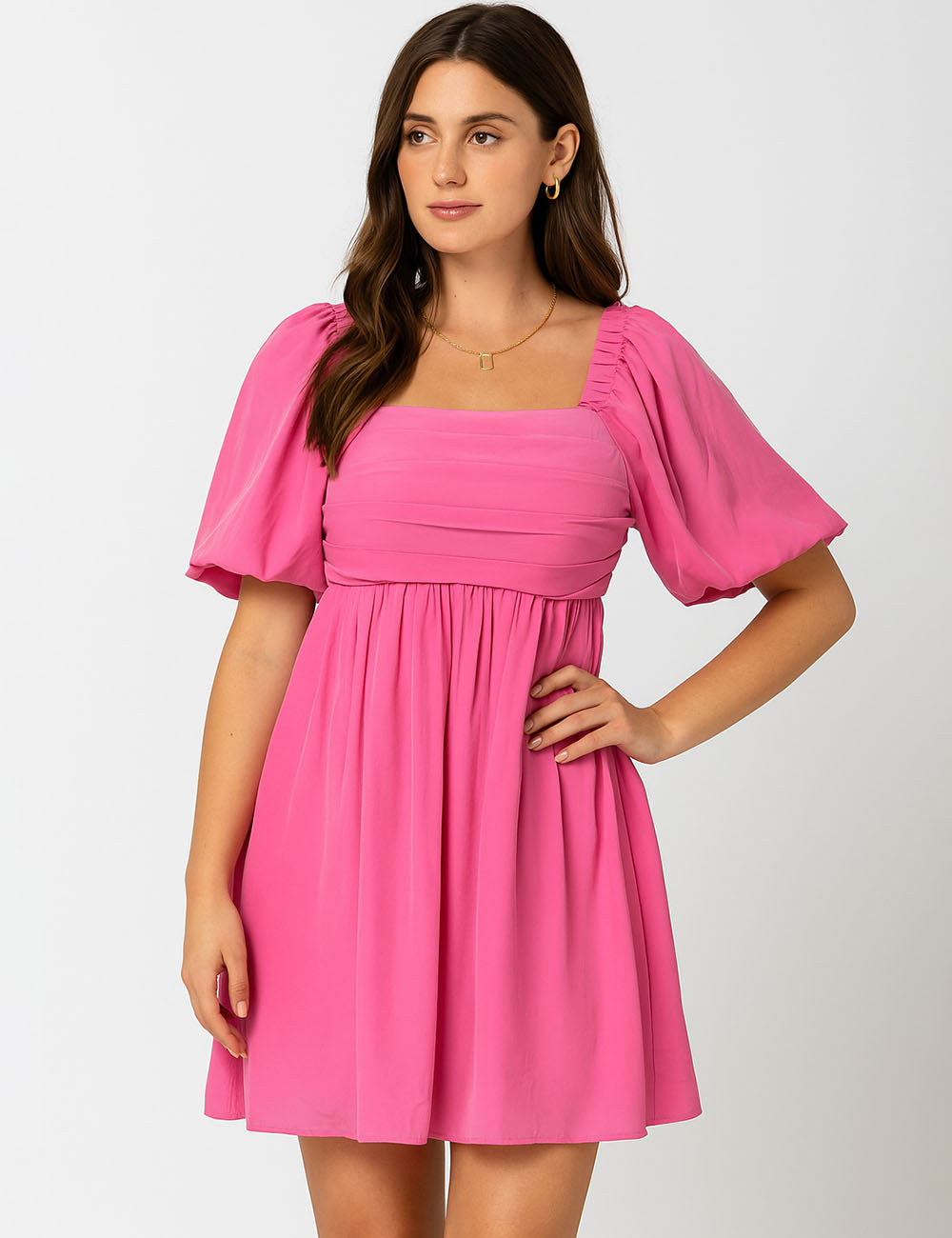 Ladies Solid Color Bubble Sleeves Mini Dress SKD50284