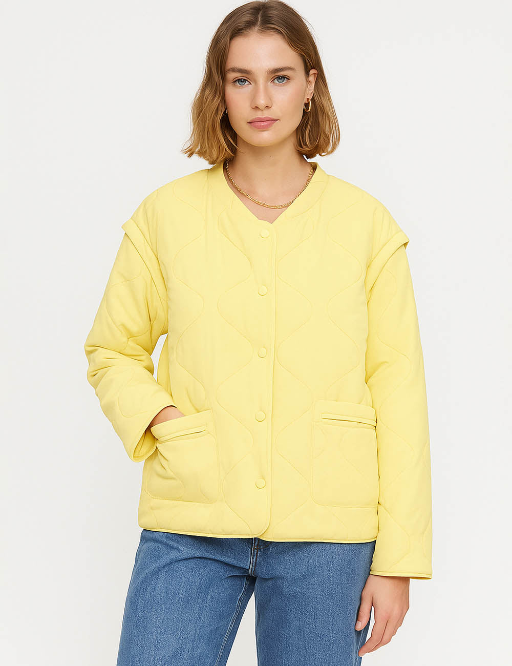 Ladies Solid Color Button Front Quilted Cotton Padded Jacket