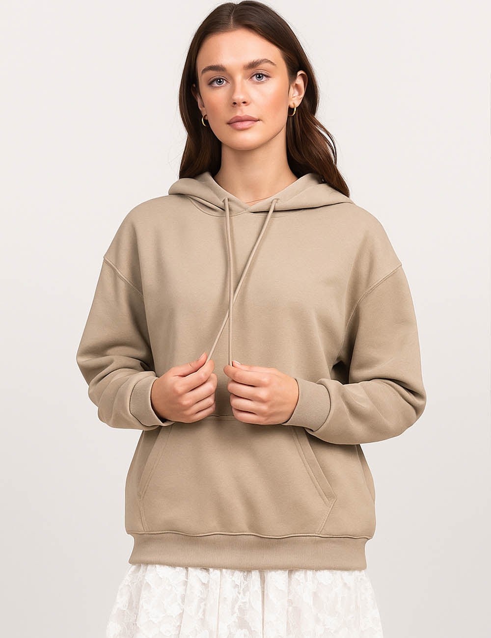 Ladies Solid Color Drawstring Hood Hoodie SKT002