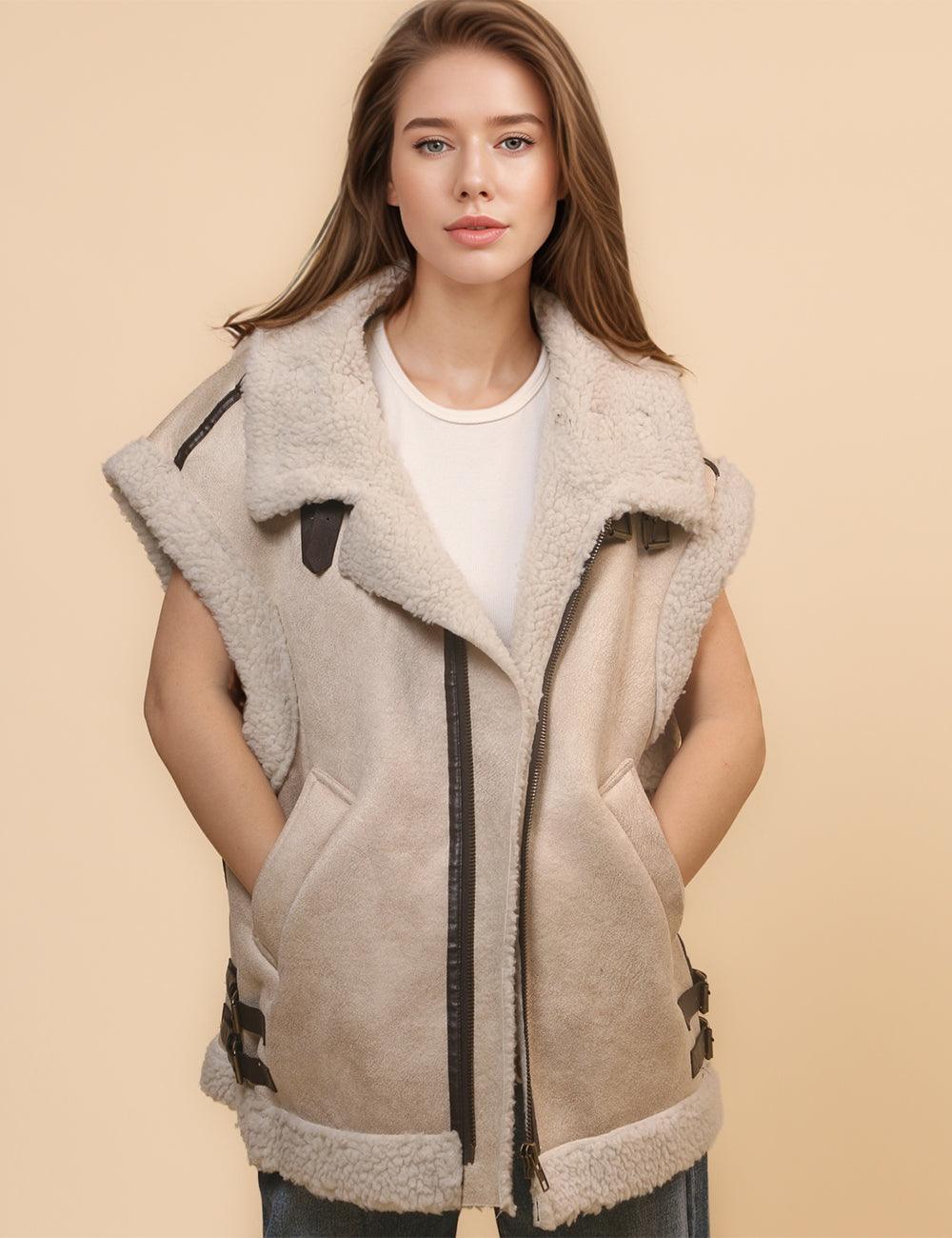 Ladies Suede Fleece Splicing Sleeveless Vest SKT4656