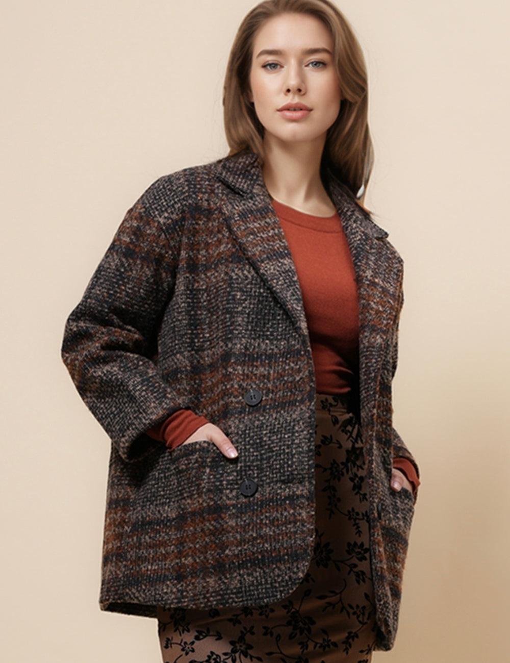 Ladies Button Down Long Sleeves Plaid Shirt Jacket