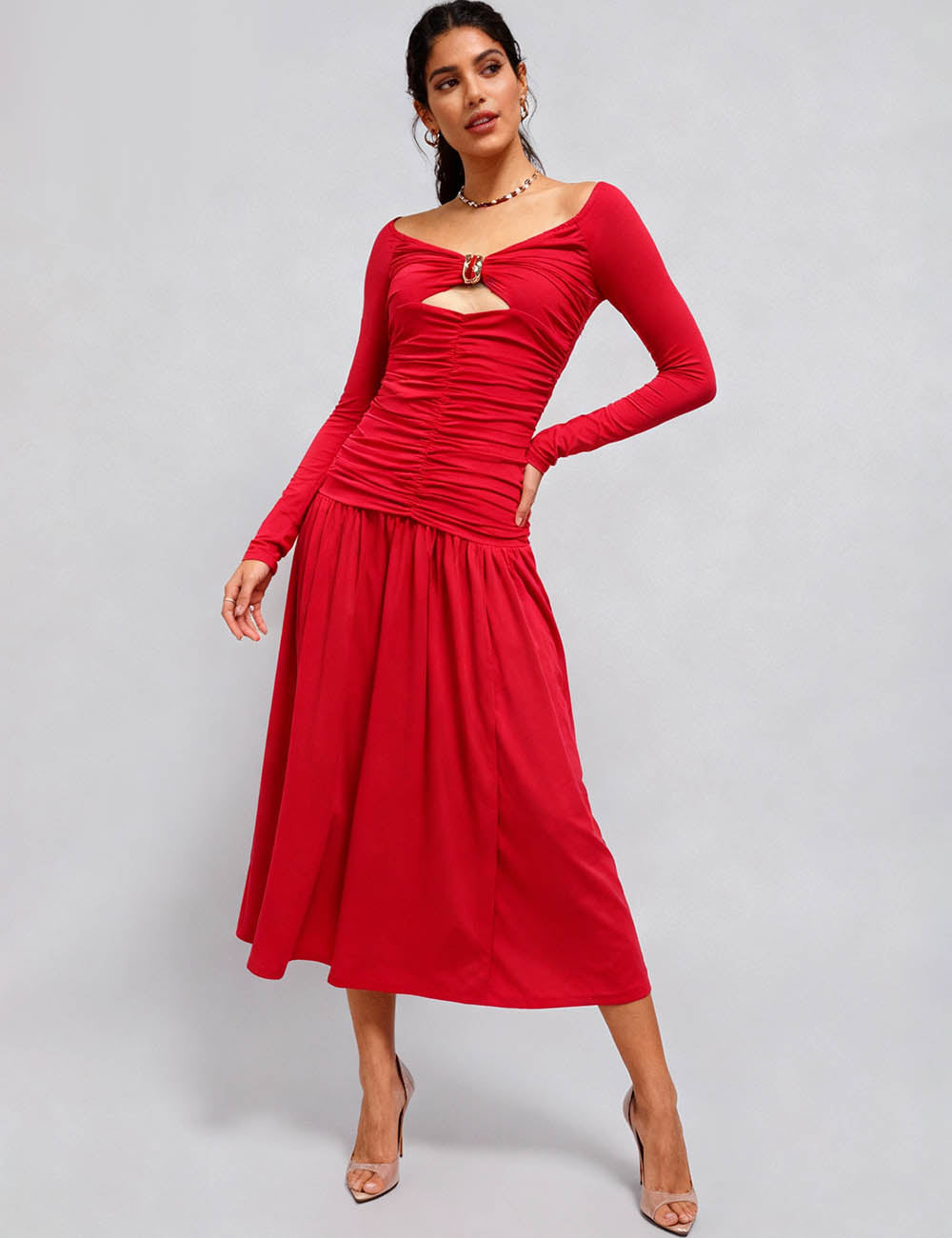 Features: * Ladies Midi Dress * Polyester * Fabric No Stretch * Solid Color *...