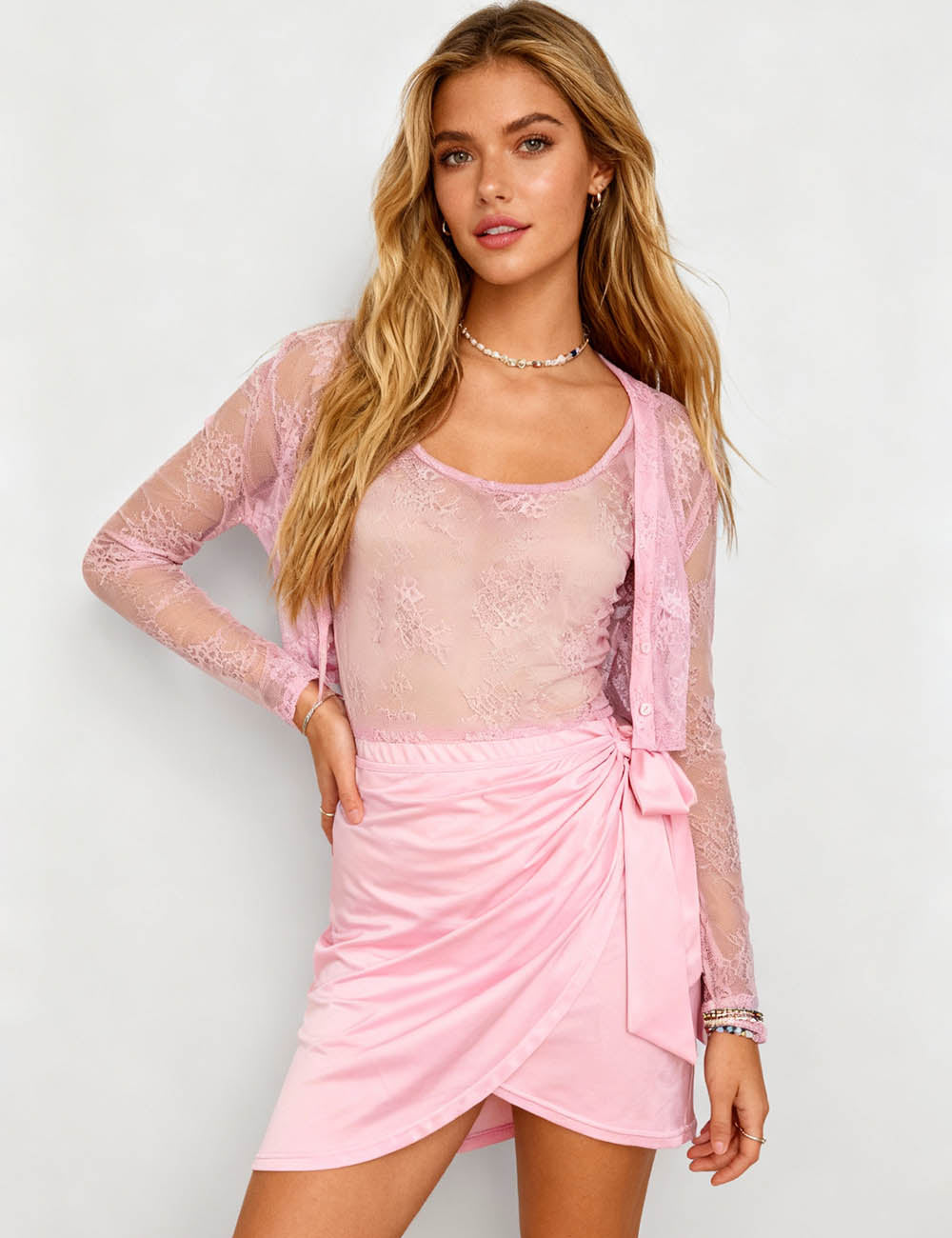 Ladies Floral Jacquard Cardigan Tube Top Drawstring Shorts 3PCS Set