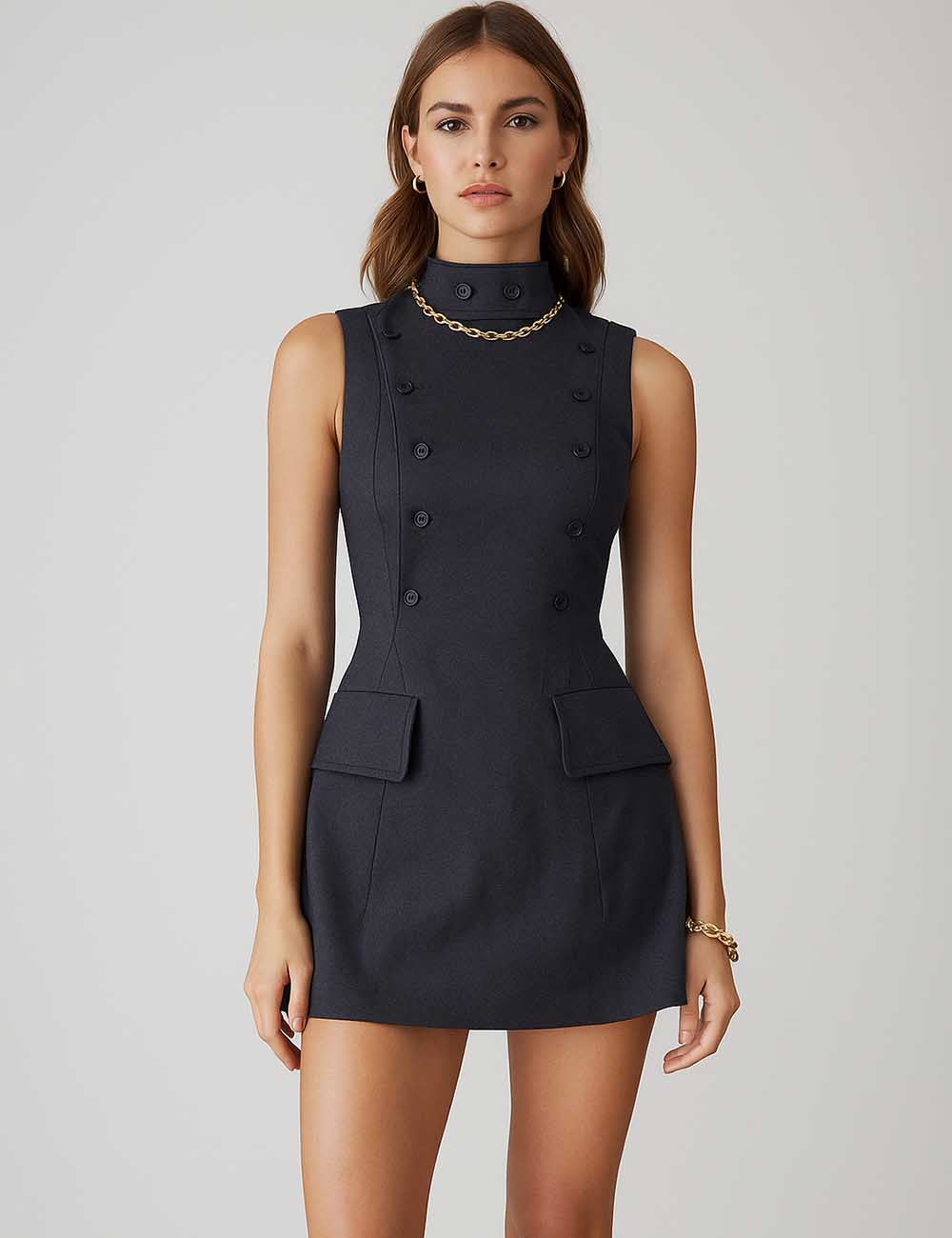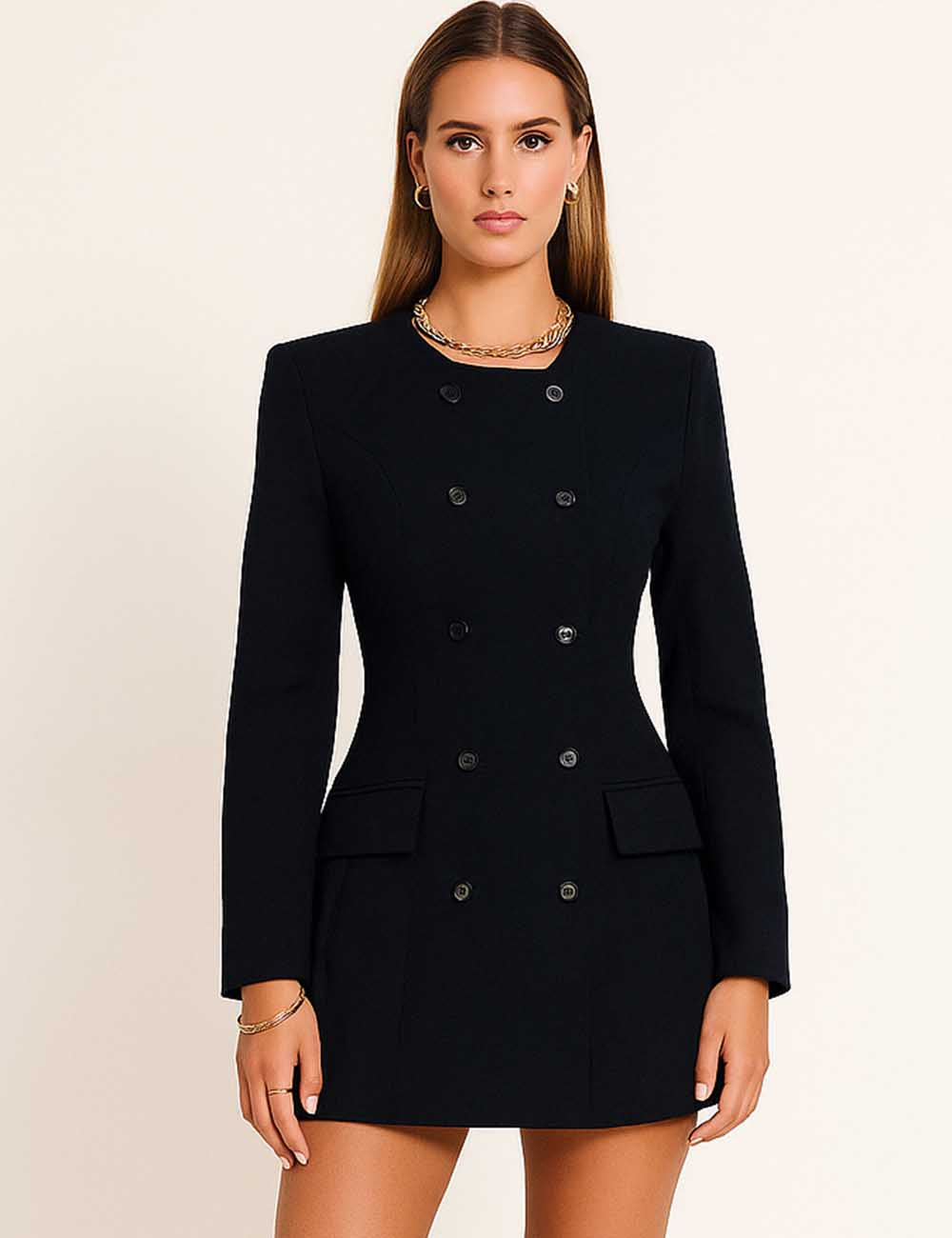 Features: * Ladies Blazer Mini Dress * 82% Polyester,16% Viscose and 2% Spandex  * Fabric...