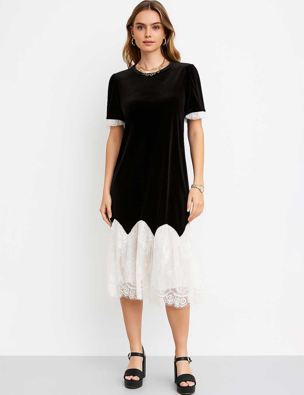 Features: * Ladies Midi Dress * 95% Polyester and 5% Spandex * Fabric with Stretch...