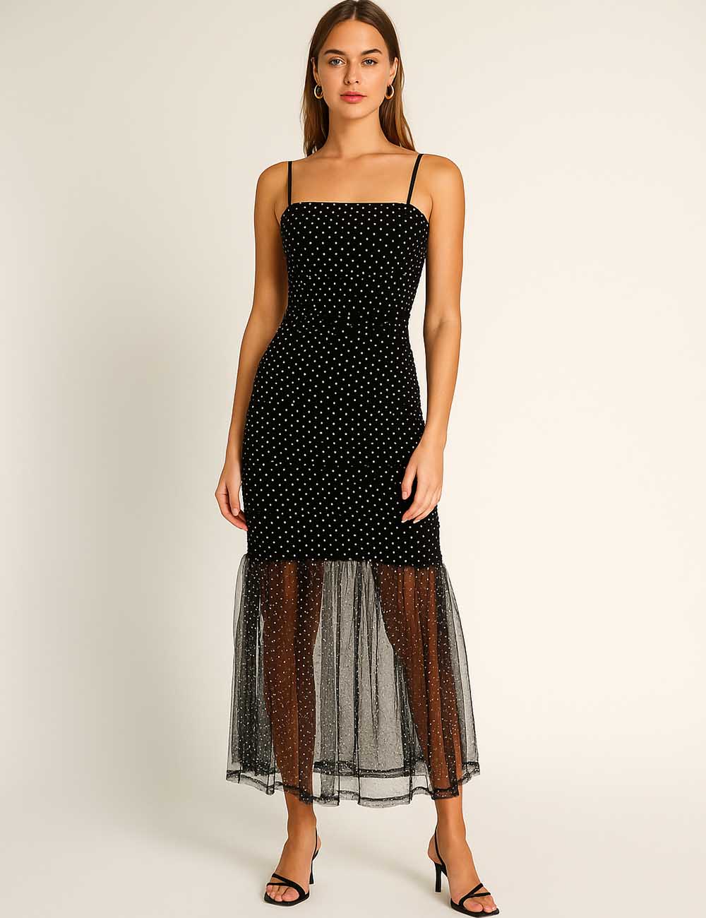 Ladies Polka Dot Bodycon Spaghetti Strap Sleeveless Maxi Dress