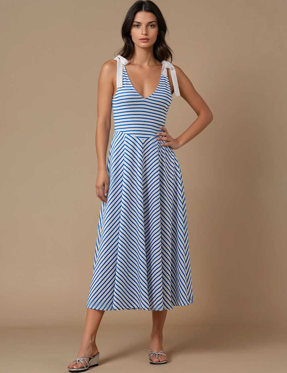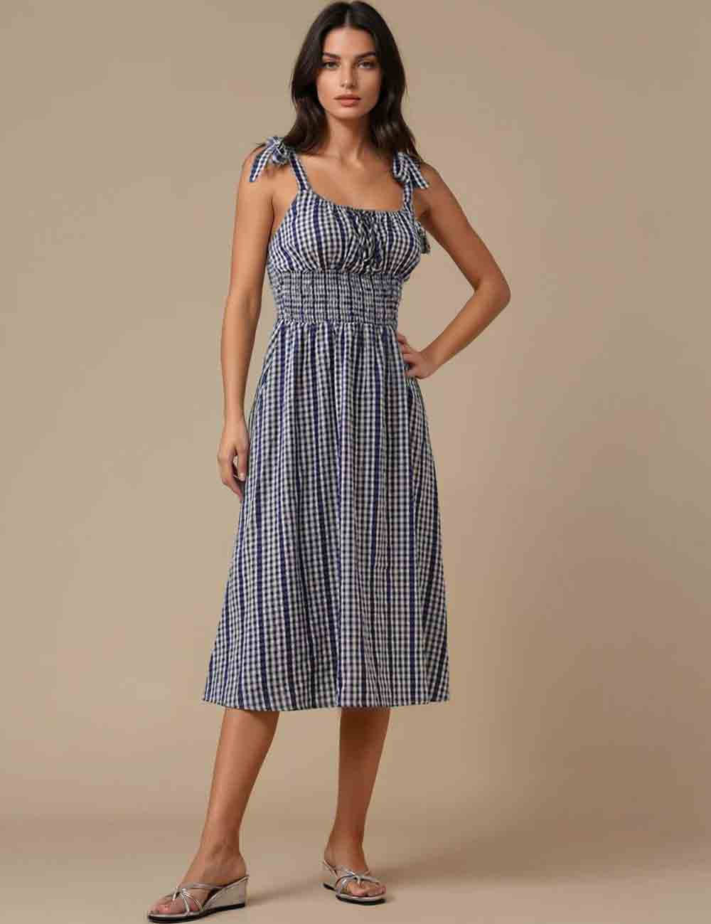 Features: * Ladies Midi Dress * 50% Cotton and 50% Polyester with 100% Polyester Lining...