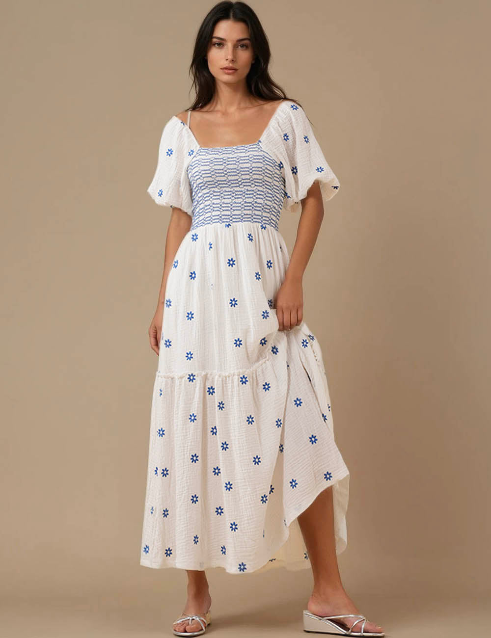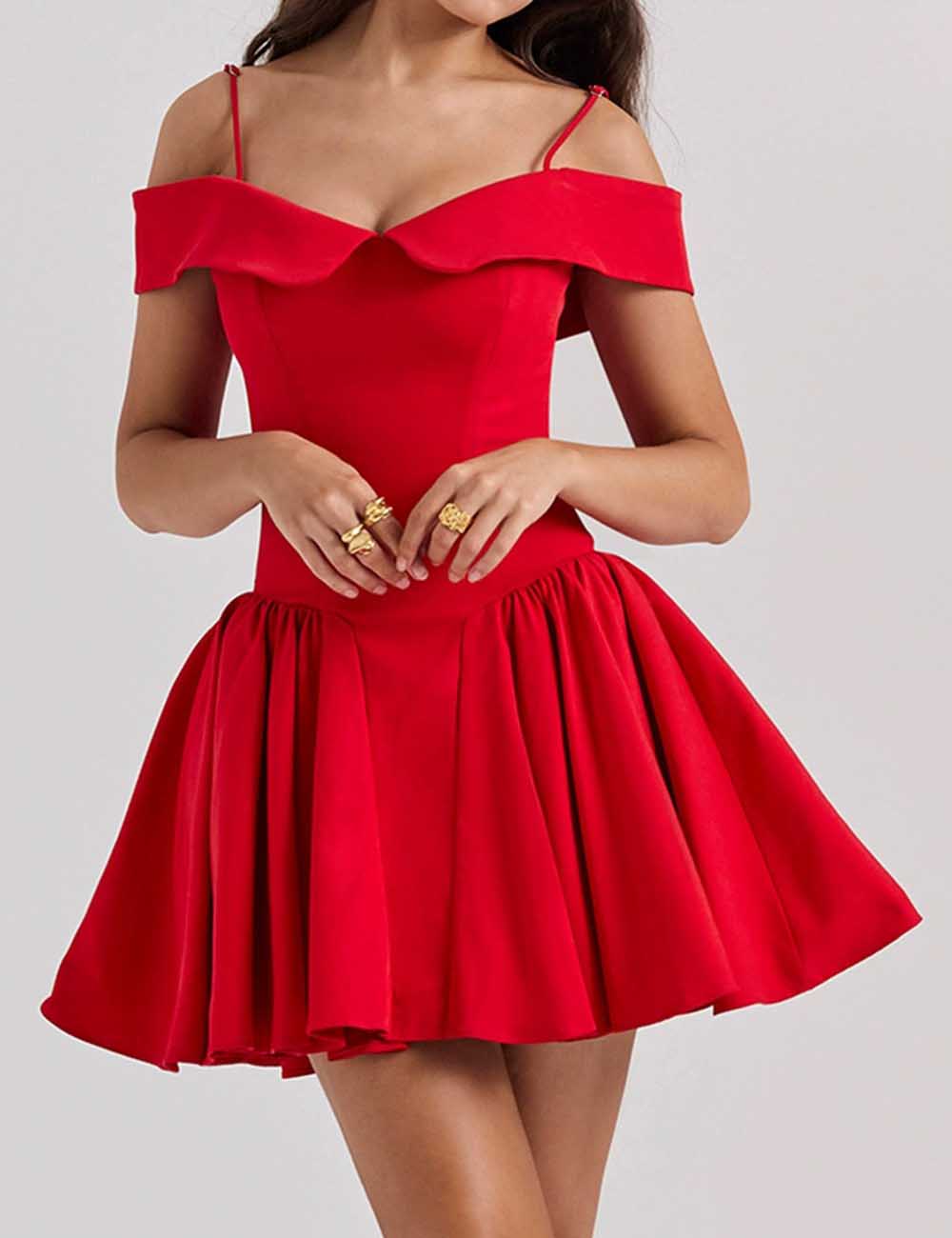 Ladies Solid Color Off-Shoulder Spaghetti Strap Puff MiniĀ Dress