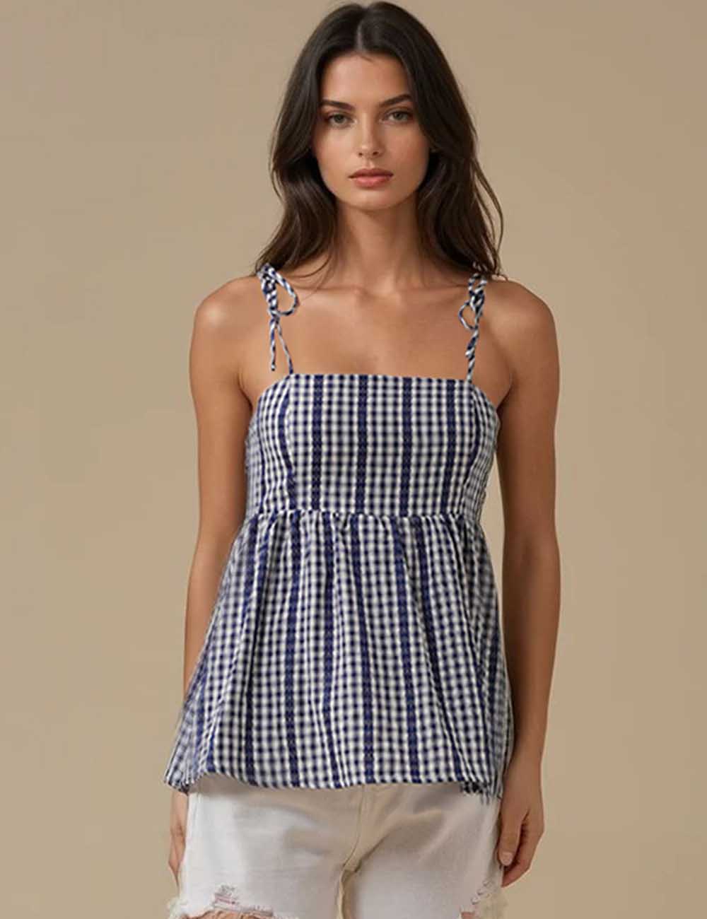 Ladies Solid Color Crinkle String Tie Cami Top & PantsĀ Set