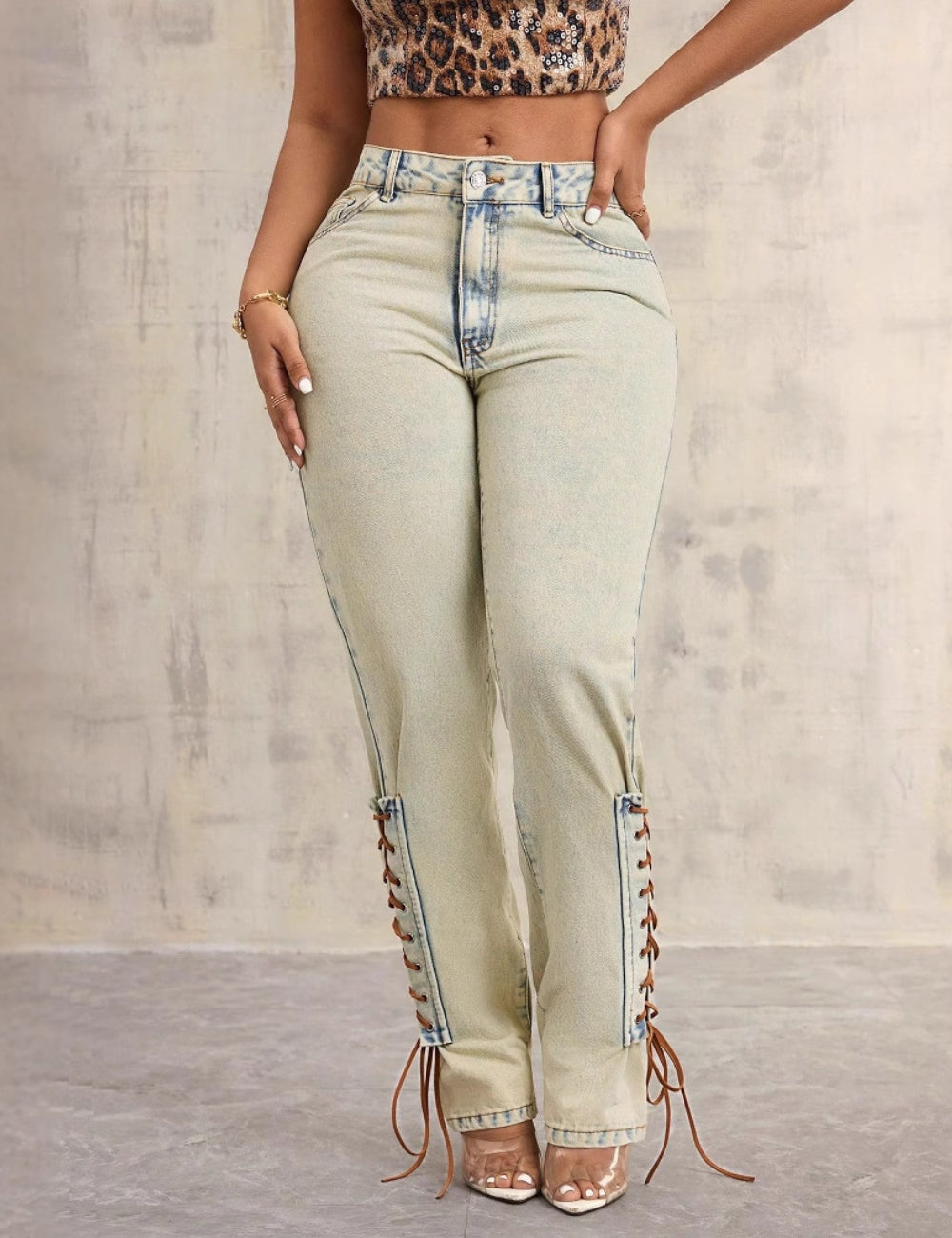 Features: * Ladies Jeans * Polyester and Cotton * Fabric No stretch * Button Closure...
