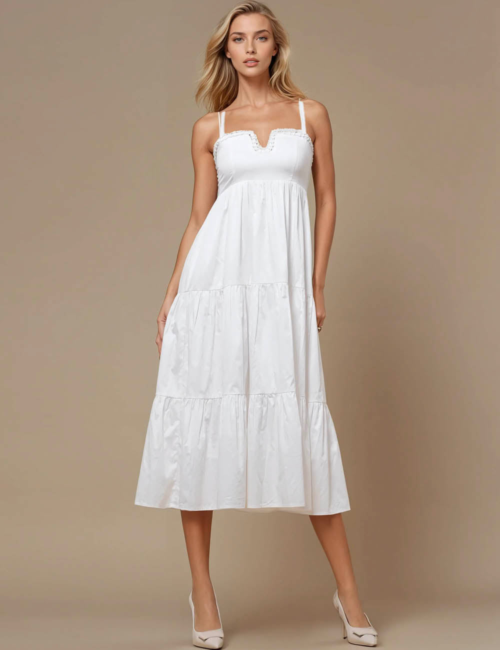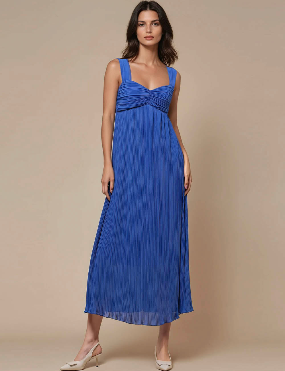 Features: * Ladies Midi Dress * 100% Polyester * Fabric No Stretch * Solid Color * Square...