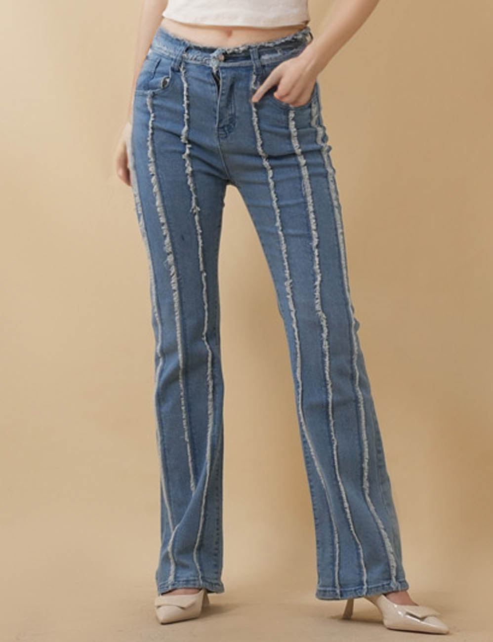Features: * Ladies Denim Pants * Polyester and Cotton * Slight Stretch * Distressed *...