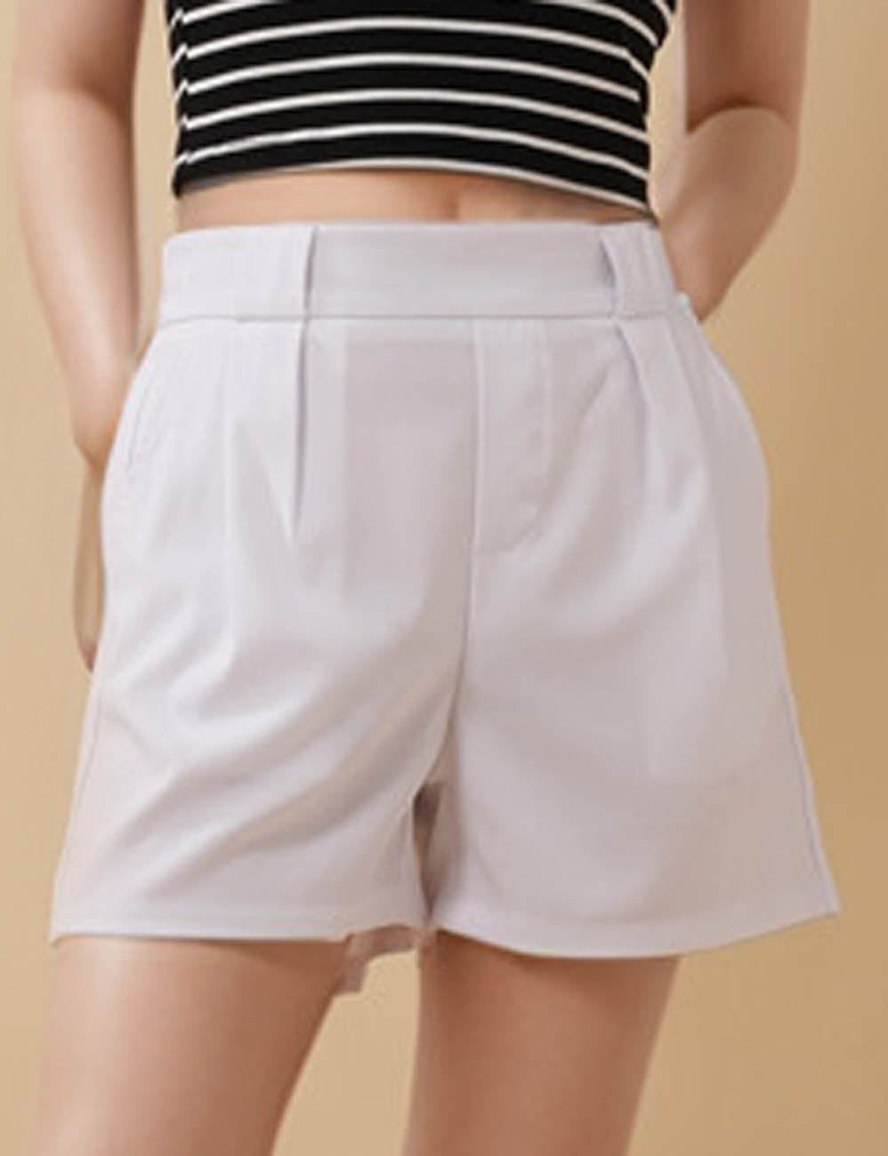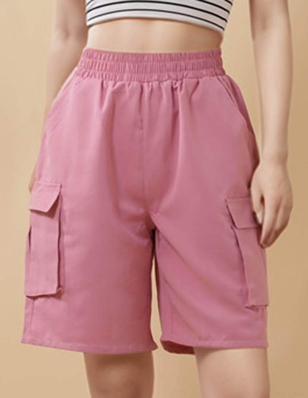 Ladies Solid Color Elastic Waist Straight Leg Shorts