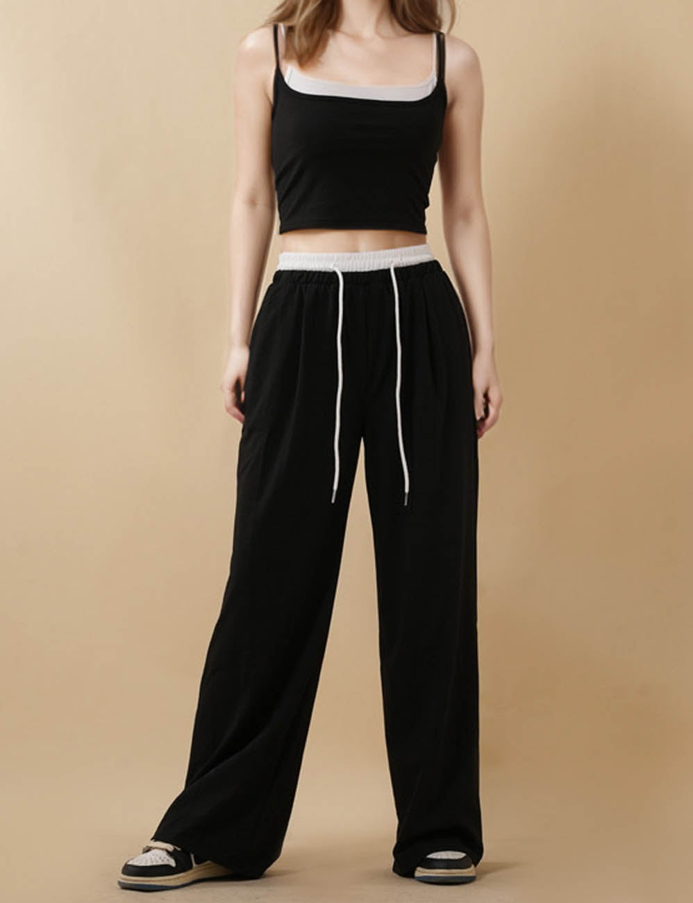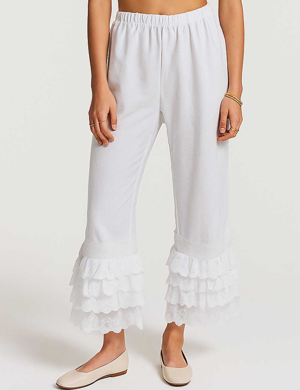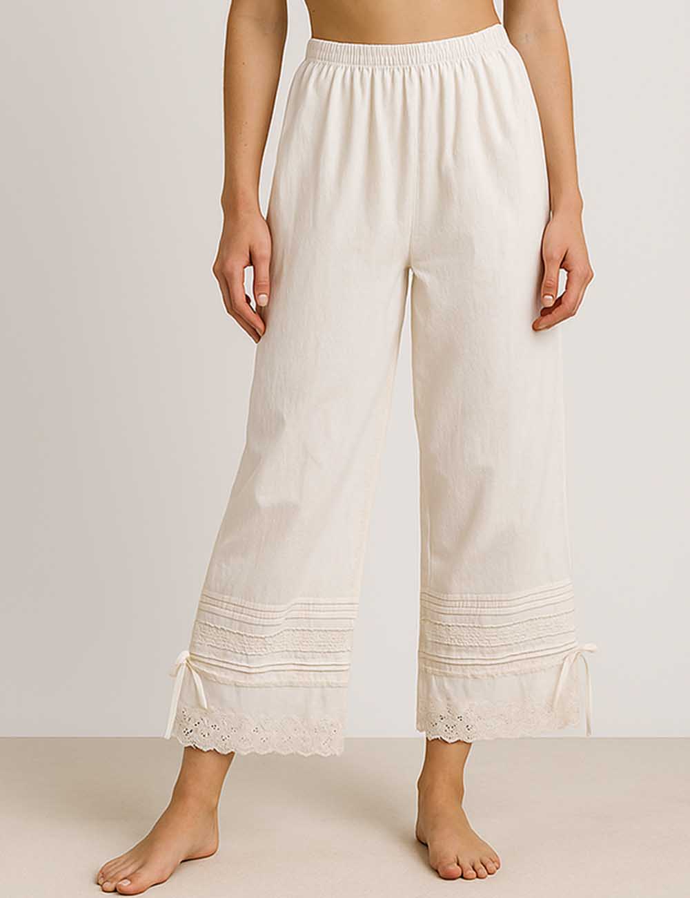 Ladies Solid Color Elastic Waist Eyelet Drawstring Bloomer Pants