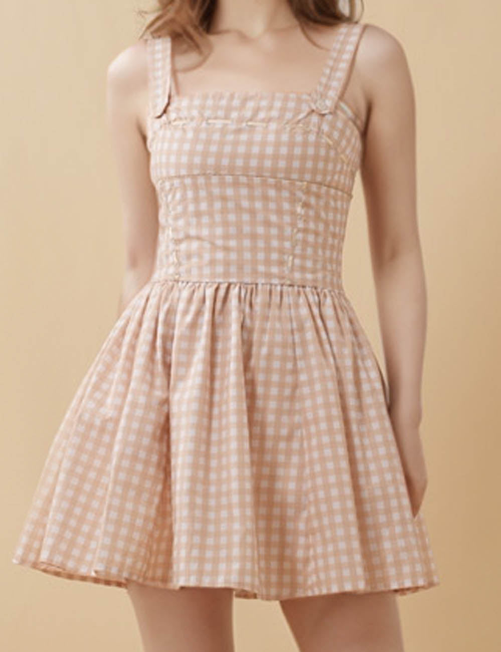 Ladies Color Block Checked Strap Shoulder Mini Dress