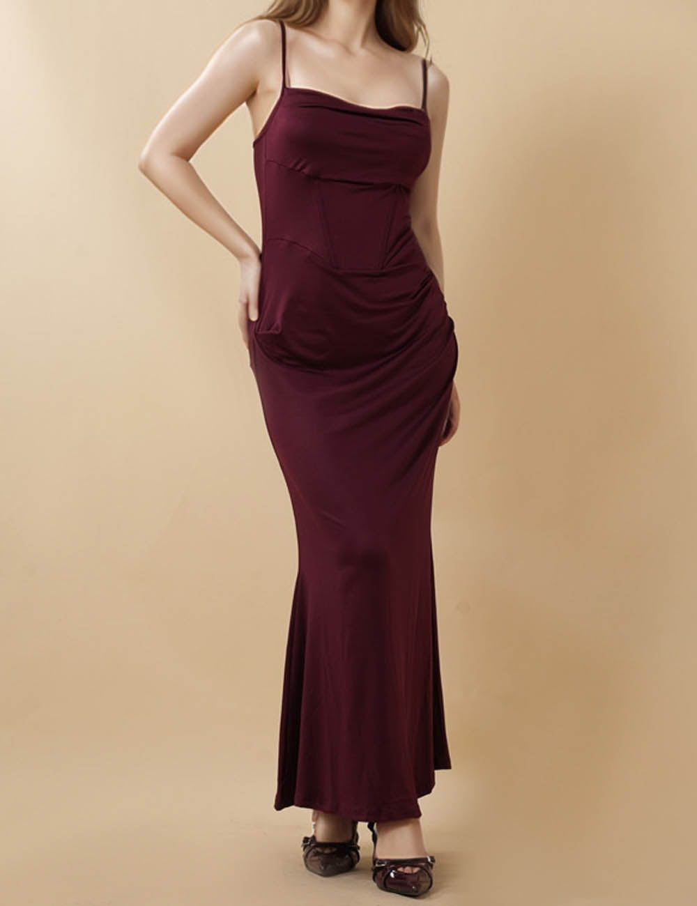Features: * Ladies Maxi Dress * Polyester * Slight Stretch * Solid Color * String...