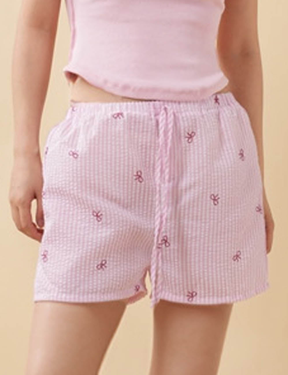 Features: * Ladies Shorts * 100% Polyester * Fabric No Stretch * Striped & Bowknot Print...