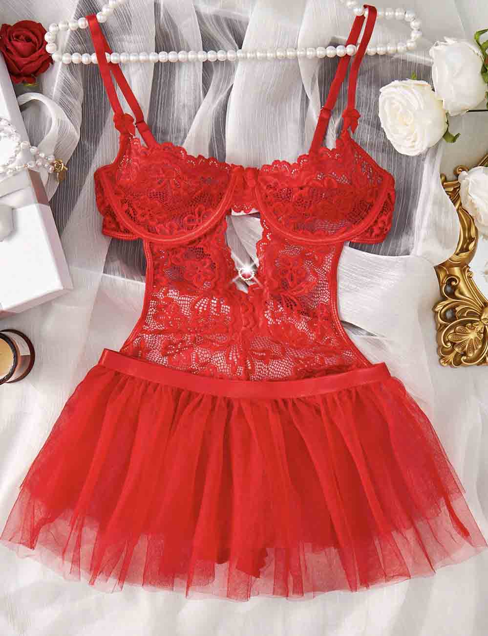 Ladies Floral Lace Corsets String Tie Leg Straps Chemise Set 8MY96617