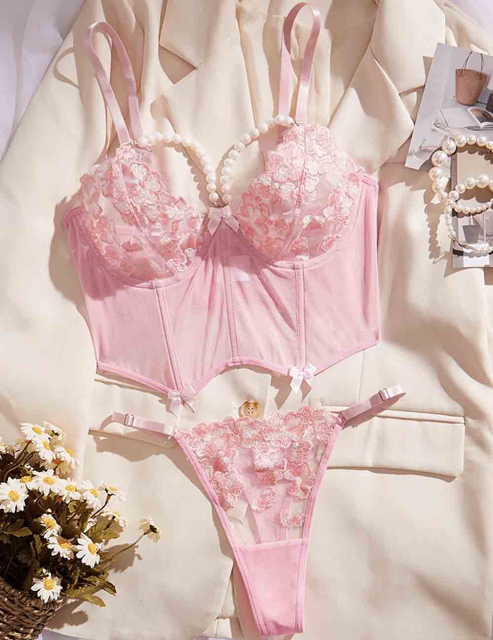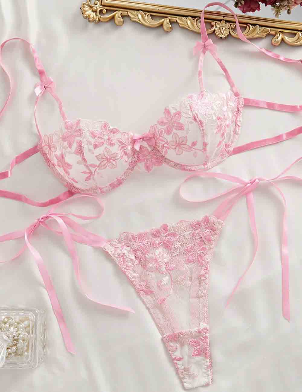 Ladies Floral Embroidery See Through 2PCS Lingerie Set 8XY0132