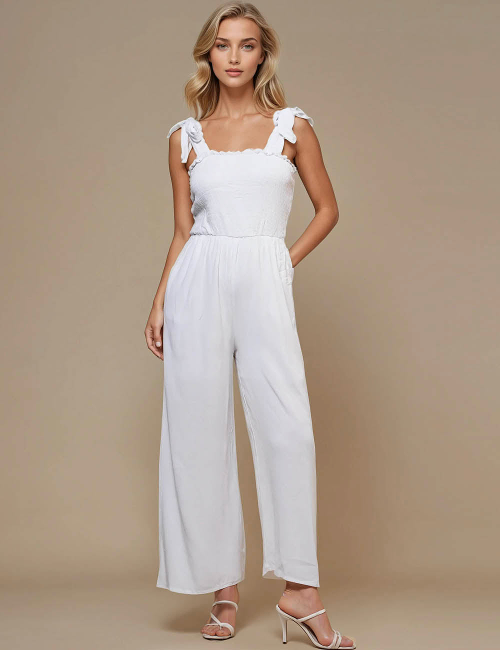 Ladies Strape Tie Shoulder Wide Leg Jumpsuit SKJ50396