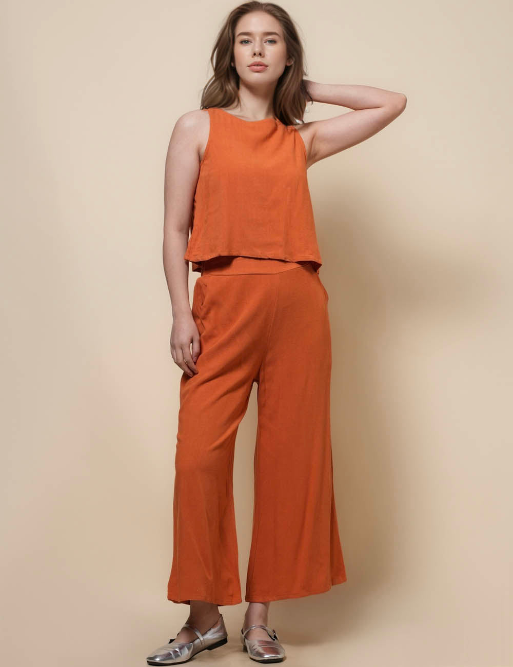 Ladies V-Neck Sleeveless Wide Leg Top & Pants Set SKST51035