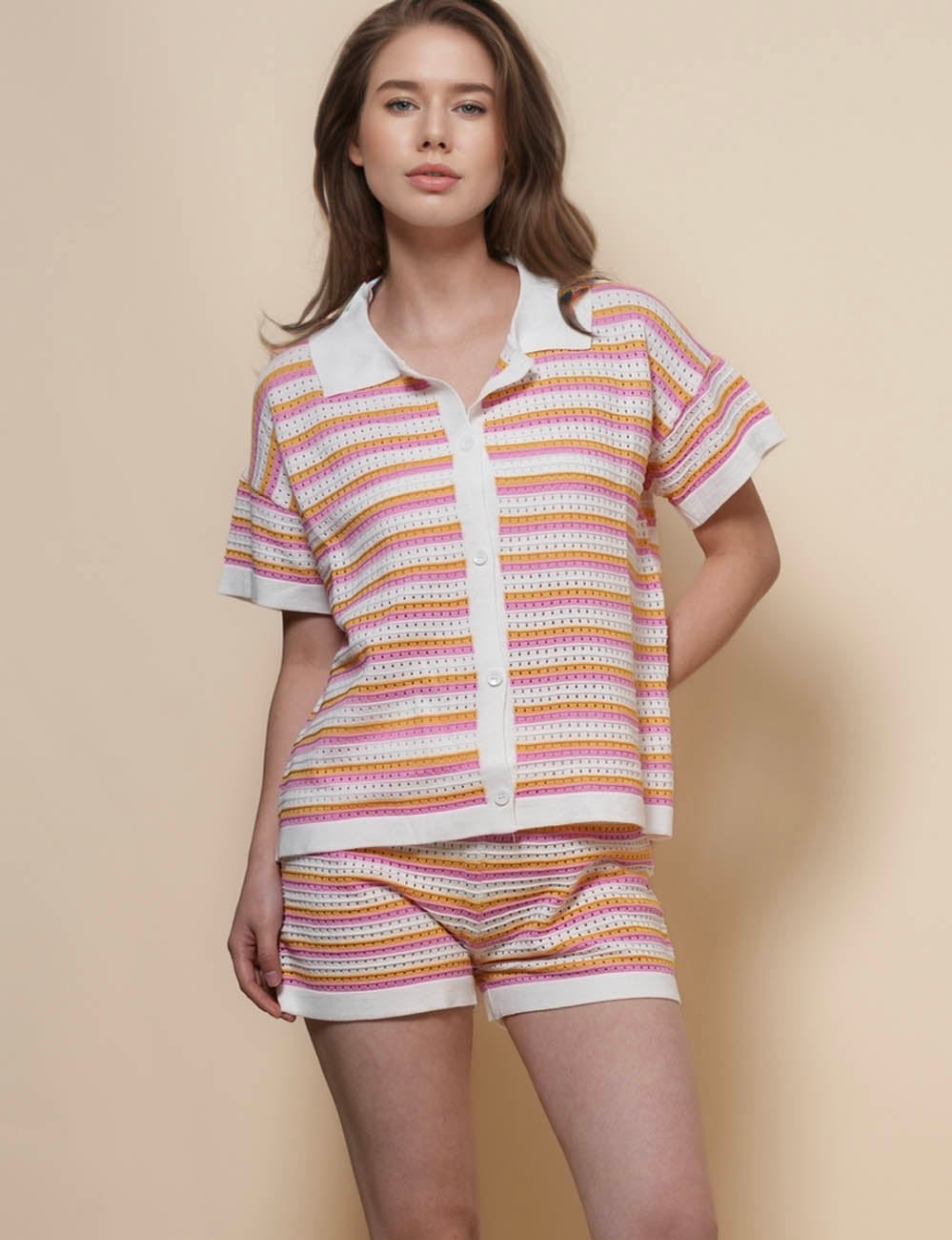 Ladies Stripe Color Block Knit Top & Shorts Set SKST50176