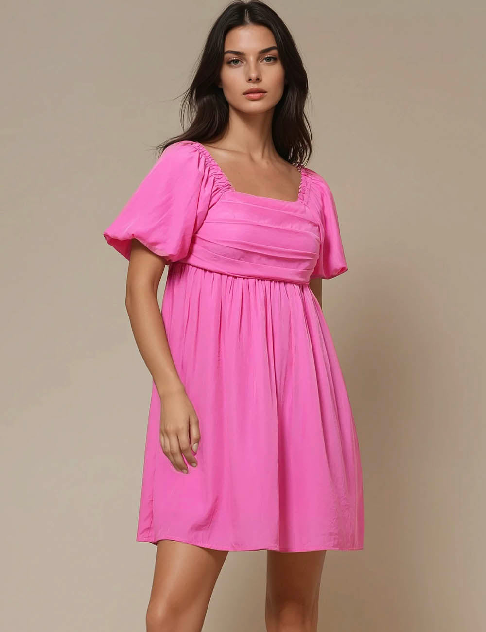 Ladies Solid Color Bubble Sleeves Mini Dress SKD50284