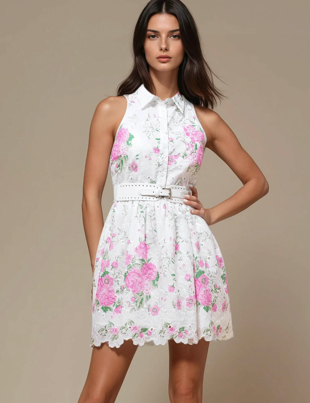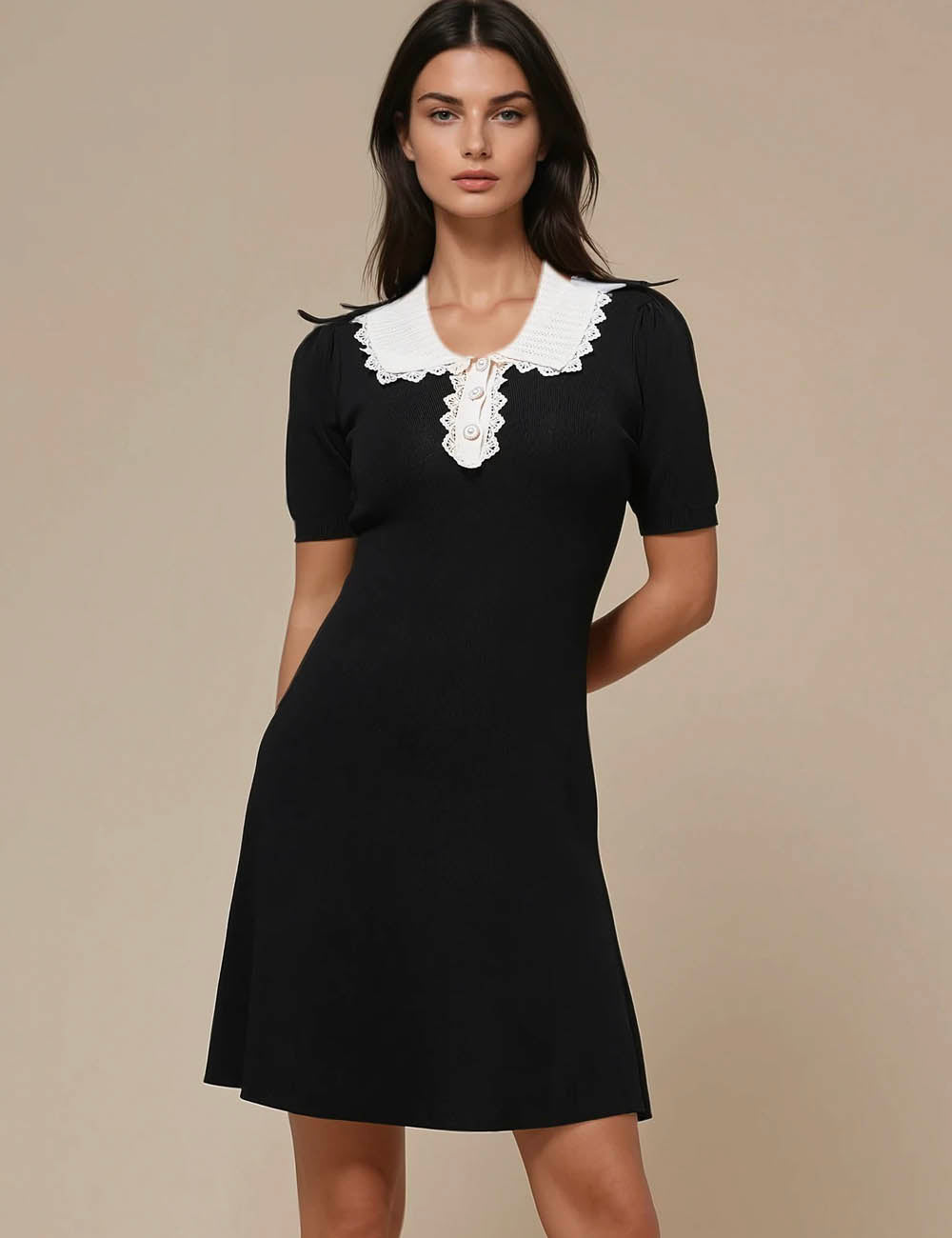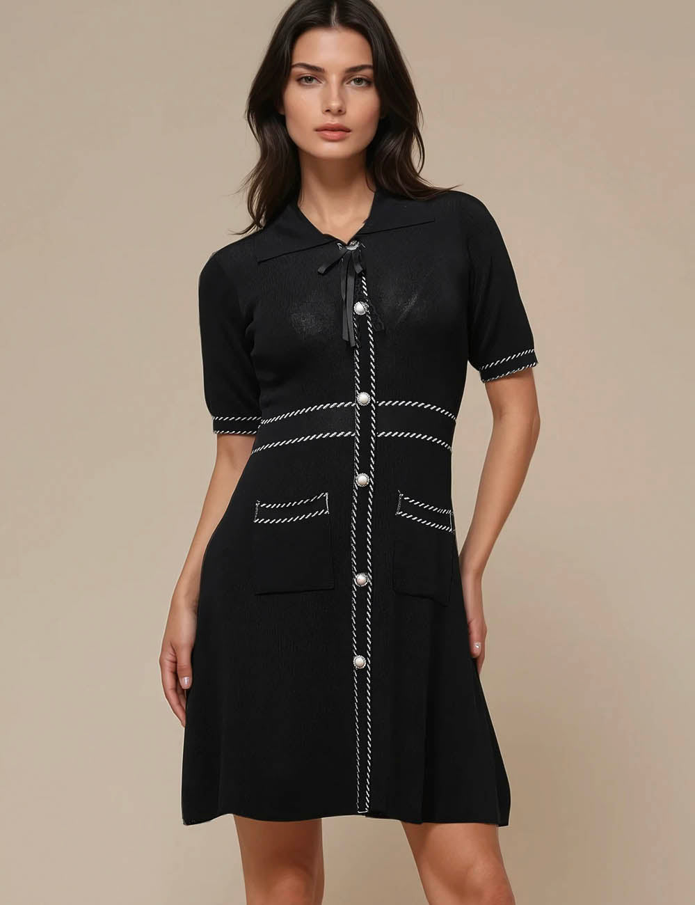 Ladies Turn Down Collar Short Sleeves Button Mini Dress SKD4039