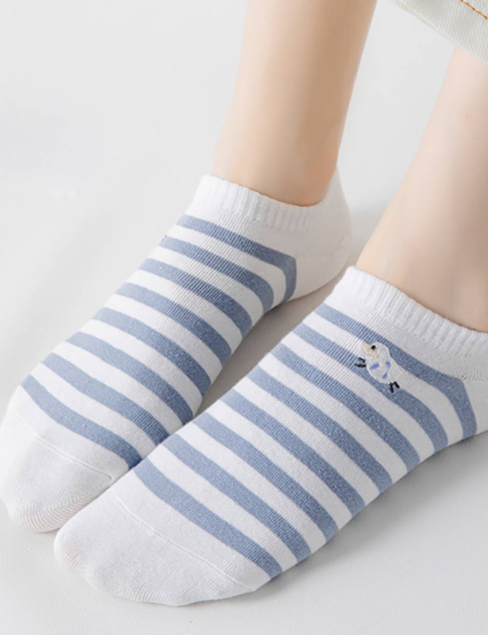 Ladies Embroidery Sheep Striped Knit Boat Socks SKAS50030