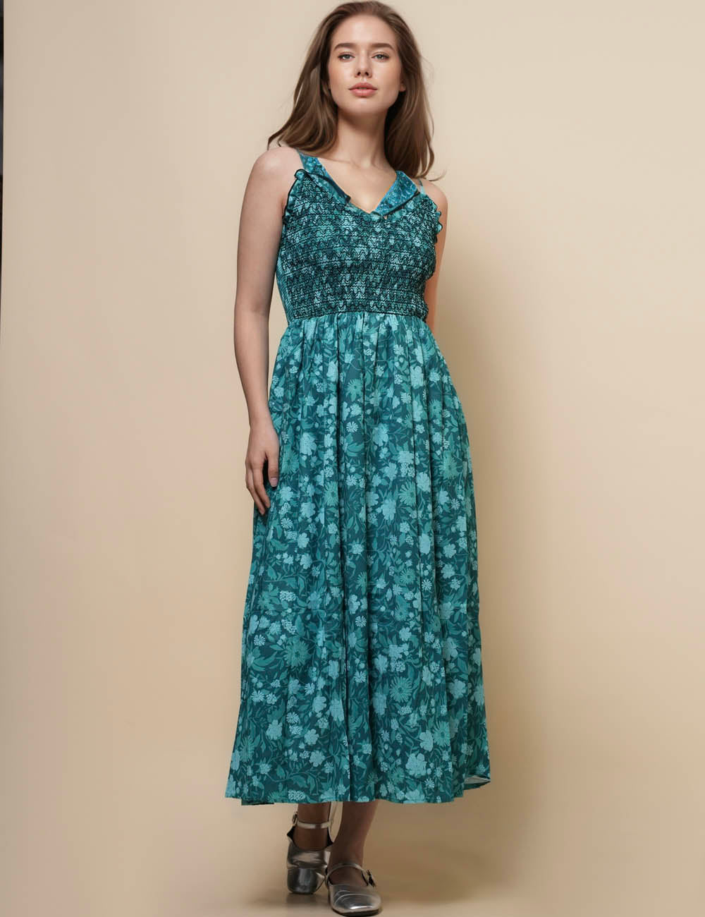 Ladies V-Neck Floral String Shoulder Maxi Dress SKD50415