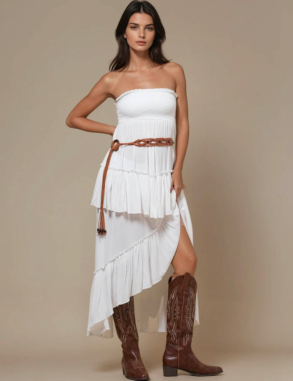 Ladies Daisy Embroidery Back Open Midi Dress SKD50263