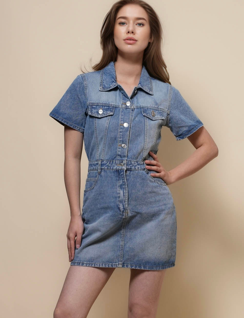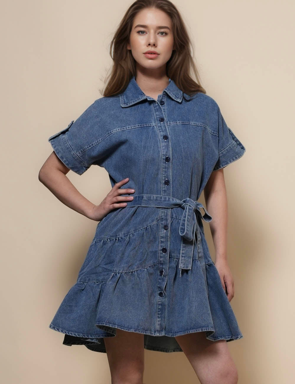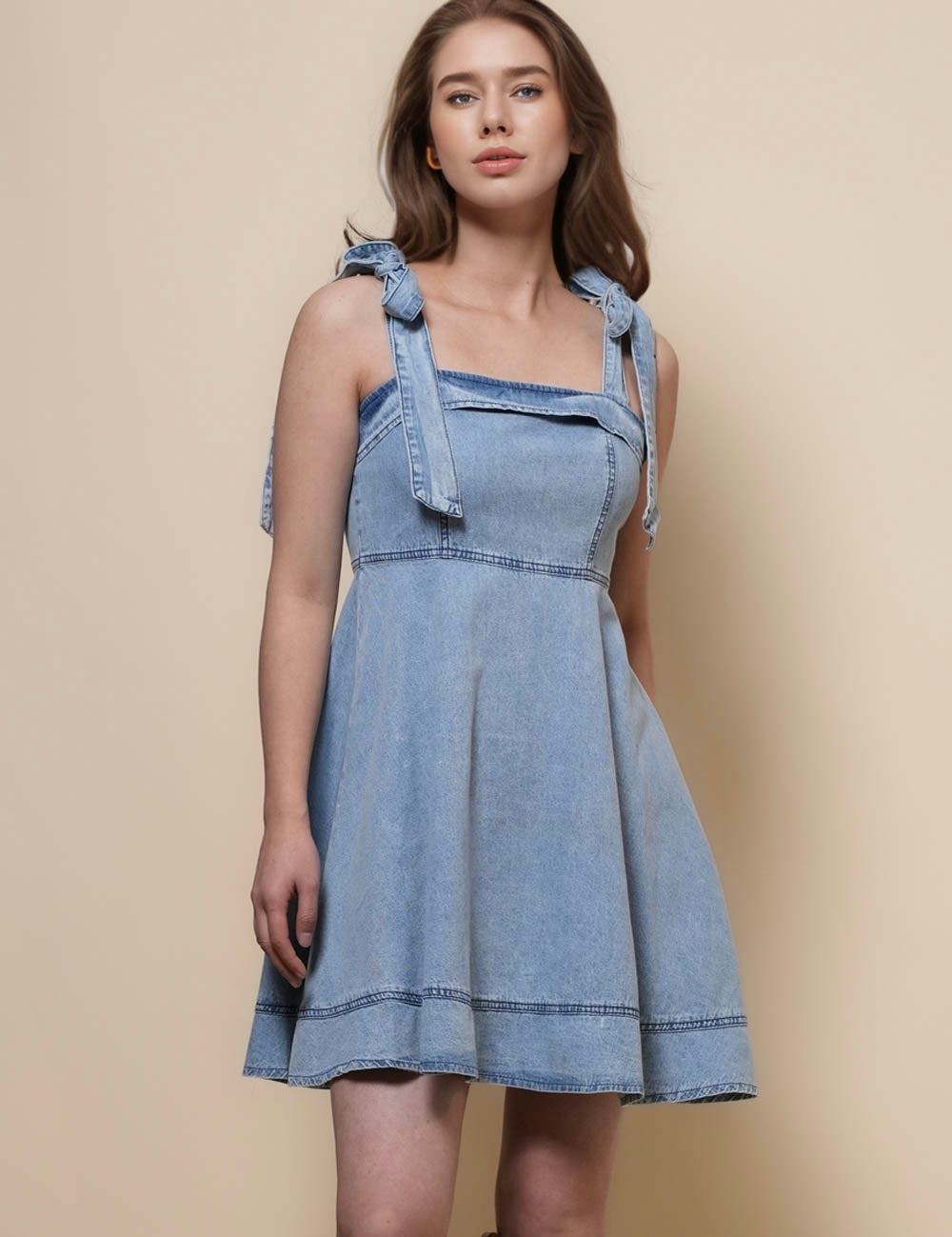 Ladies Shoulder Strape Tie Denim Mini Dress SKD50011