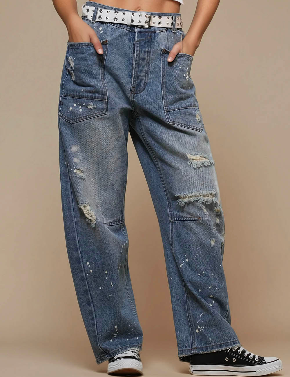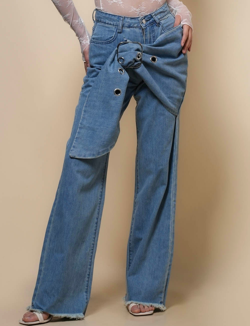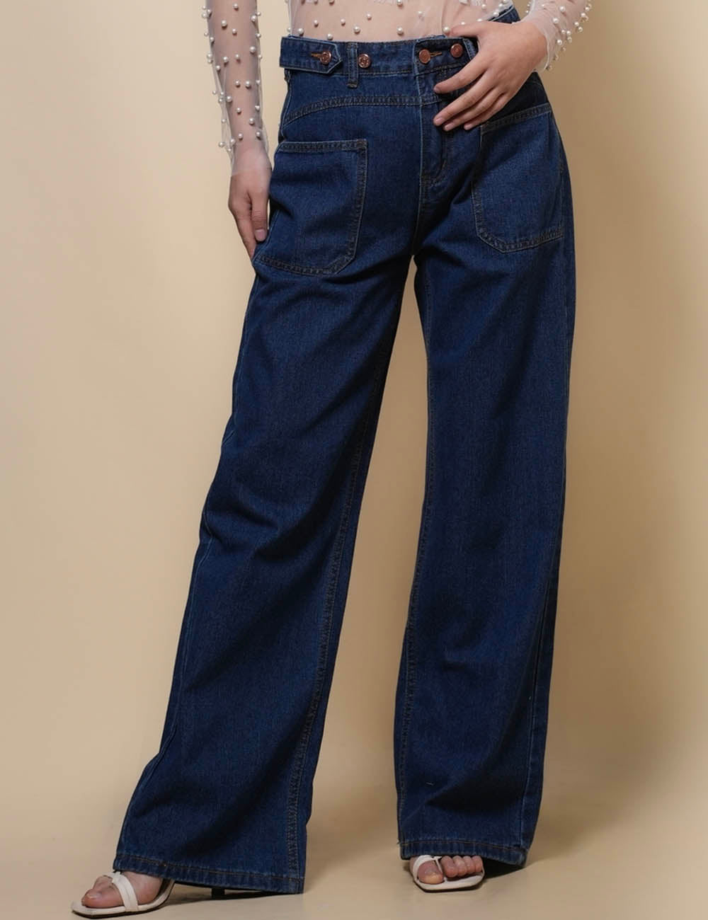 Ladies Stright Leg Denim Pants Pockets Jeans SKP50073